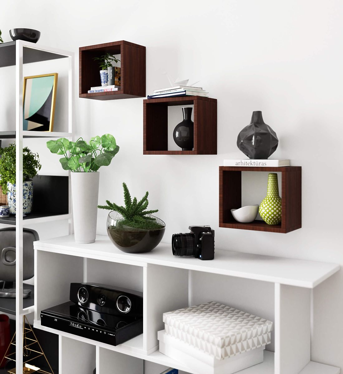 Tri nástenné police dostupné v našej ponuke sú zaujímavým riešením, ktoré možno úspešne využiť v každom moderne zariadenom interiéri. Naša ponuka je vyrobená z laminovanej dosky o hrúbke 16 milimetrov. Tento materiál vykazuje vysokú odolnosť proti oderu. Hrany políc sú olepené ABS hranou. Sada obsahuje tri štvorcové police o rozmeroch 25 x 25 centimetrov. Moderná farebnosť dub sonoma a vysoká kvalita tohto zaujímavého riešenia spôsobujú, že police sú veľmi obľúbené medzi zákazníkmi nášho internetového obchodu.