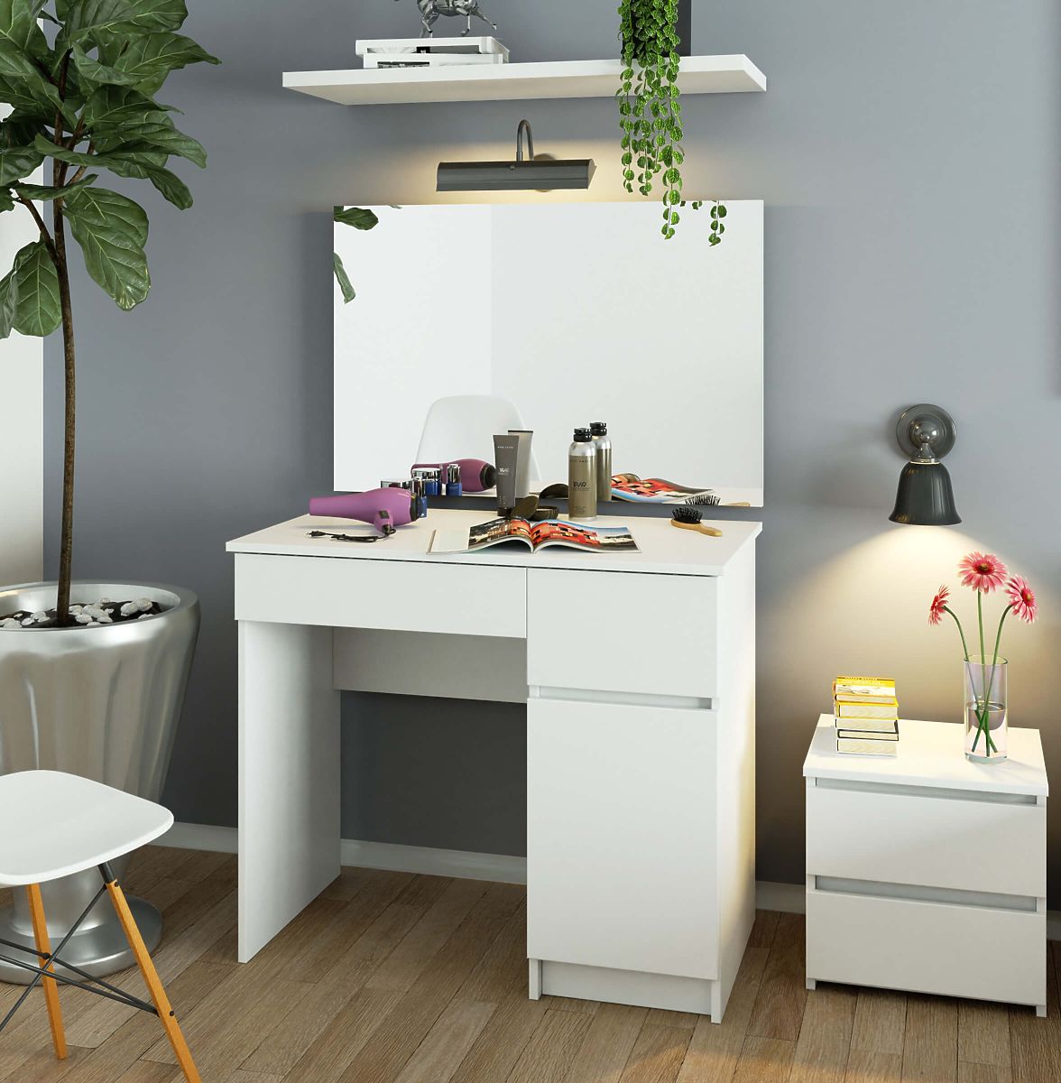 Kompaktná verzia toaletného stolíka pre ženy, ktoré chcú mať ráno možnosť rýchleho líčenia. Riešenie určené do spálne a nielen tam. Rozmery toaletného stolíka sa skvele hodia aj do kozmetických salónov.