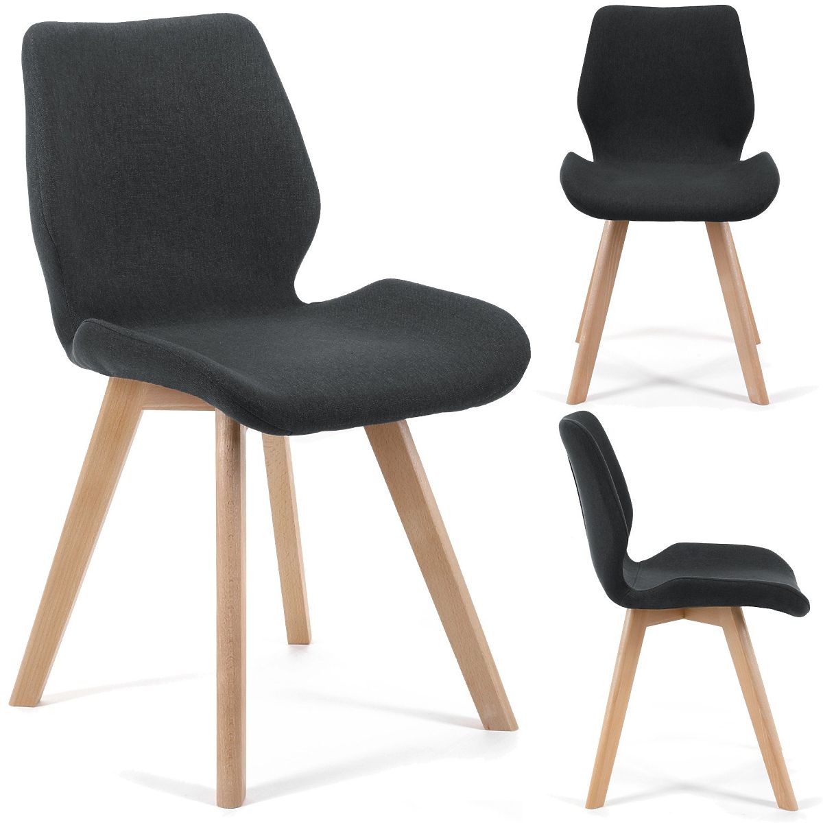 Stolička v škandinávskom štýle s čiernym látkovým čalúnením a drevenými nohami. .. viac