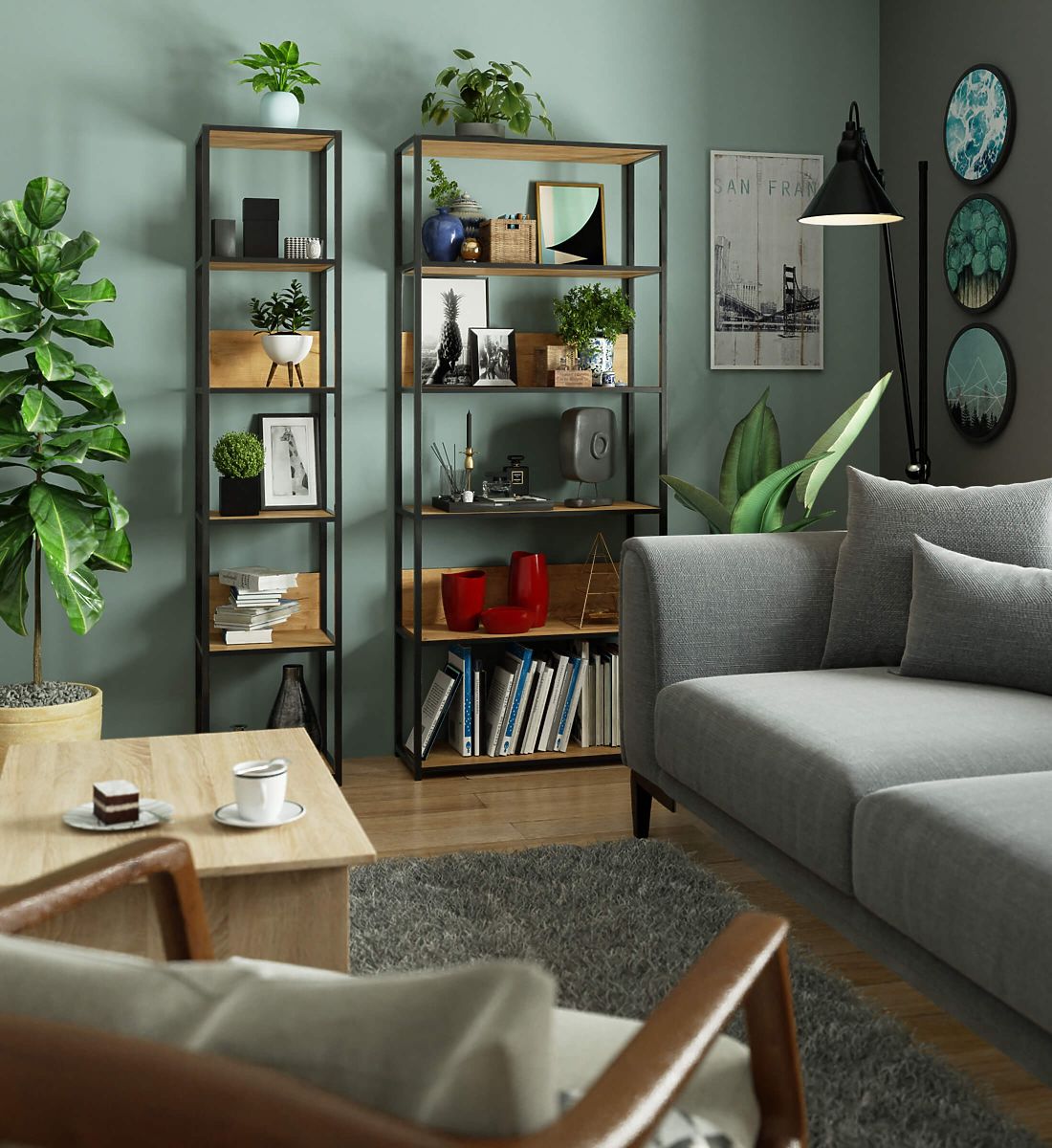 - elegantný vzhľad: regál sa vyznačuje jednoduchou formou, rám je čierny, zatiaľ čo doska je vo farbe dub craft,