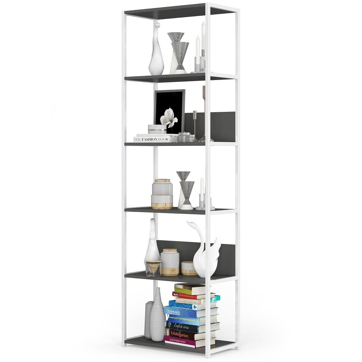Kovový loftový regál je praktický a moderný nábytok, ktorý sa hodí ako do obývacej izby, tak do kancelárie. Regál s bielym kovovým rámom a 6 policami v šedej farbe. Police regálu sú vyrobené z laminovanej dosky o hrúbke 16 mm. Je to trvanlivý a pevný materiál, ktorý sa vyznačuje vysokou odolnosťou proti oderu. Hrany sú dodatočne chránené ABS hranou, vďaka čomu bude nábytok stále vyzerať dobre, aj pri veľmi intenzívnom každodennom používaní. Regál je vybavený 6 policami, na ktoré môžete umiestniť predmety, ktoré chcete vystaviť alebo mať jednoducho po ruke. Celkovo pôsobí veľmi štýlovo a moderne.
