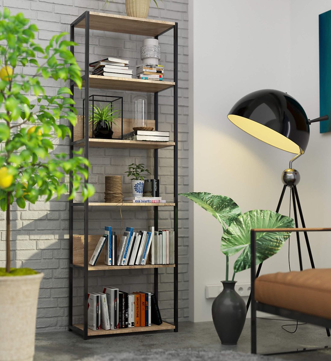 Kovový loftový regál je praktický a moderný nábytok, ktorý sa hodí ako do obývacej izby, tak do kancelárie. Regál s čiernym kovovým rámom a 6 policami v farbe dub sonoma. Police regálu sú vyrobené z laminovanej dosky o hrúbke 16 mm. Je to trvanlivý a odolný materiál, ktorý sa vyznačuje vysokou odolnosťou proti oderu. Hrany sú dodatočne chránené ABS hranou, vďaka čomu bude nábytok stále vyzerať dobre, aj pri veľmi intenzívnom každodennom používaní. Regál je vybavený 6 policami, na ktoré možno umiestniť predmety, ktoré chceme vystaviť alebo mať jednoducho po ruke. Celkovo pôsobí veľmi štýlovo a moderne.
