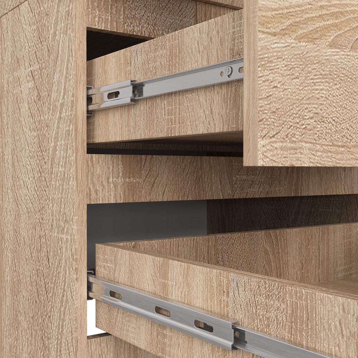 - Zásuvky sa pohybujú na kovových guľkových koľajničkách renomovanej firmy GTV- Hrany olepené ABS hranou poskytujúcou vysokú ochranu proti poškodeniu