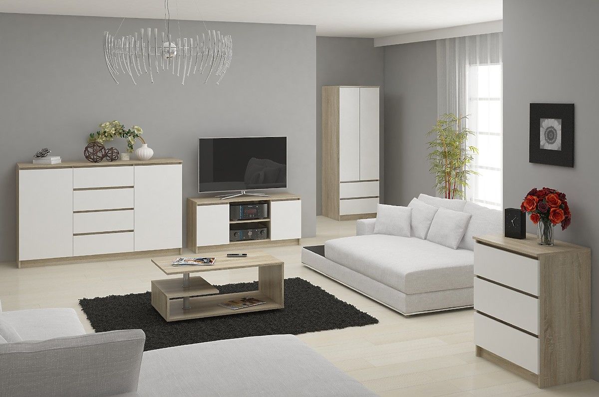 Mix farieb korpus sonoma, čelá biele Vyrobená z laminovanej dosky 16mm odolnej voči oderu.