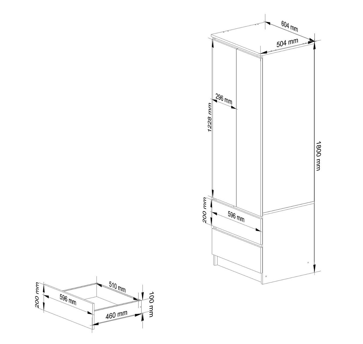 SKRIŇA STAR K60 2 DVERÍ, 2 ZÁSUVKY Vyrobená z laminovanej dosky 16mm odolnej proti oderu.