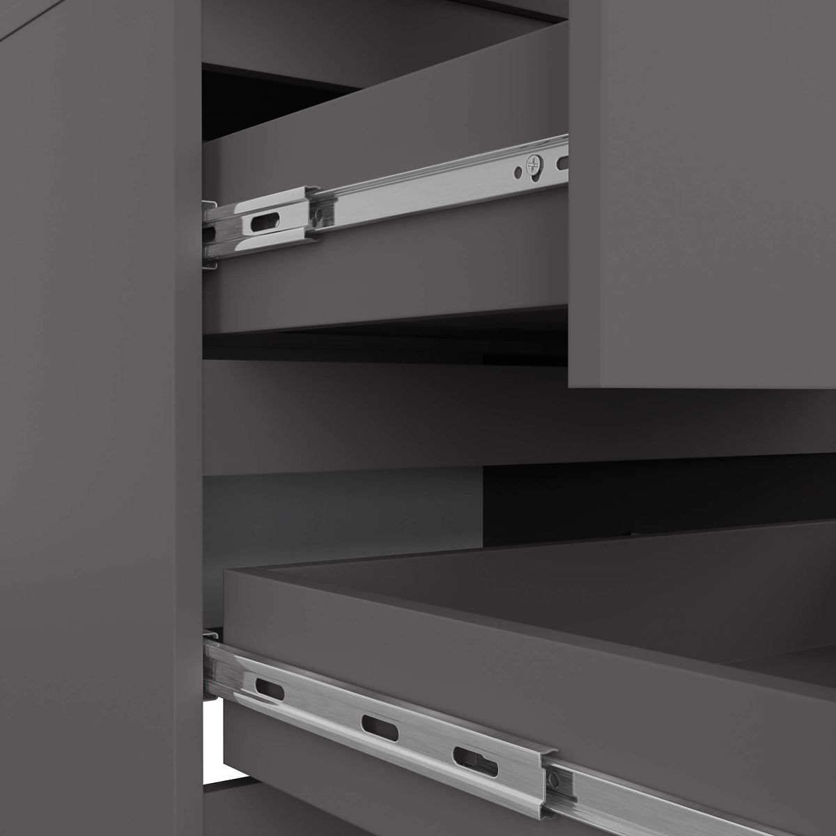 - Zásuvky sa pohybujú na kovových guľôčkových pojazdoch renomovanej firmy GTV - Hrany olepené ABS hranou zaisťujúcou vysokú ochranu proti poškodeniu