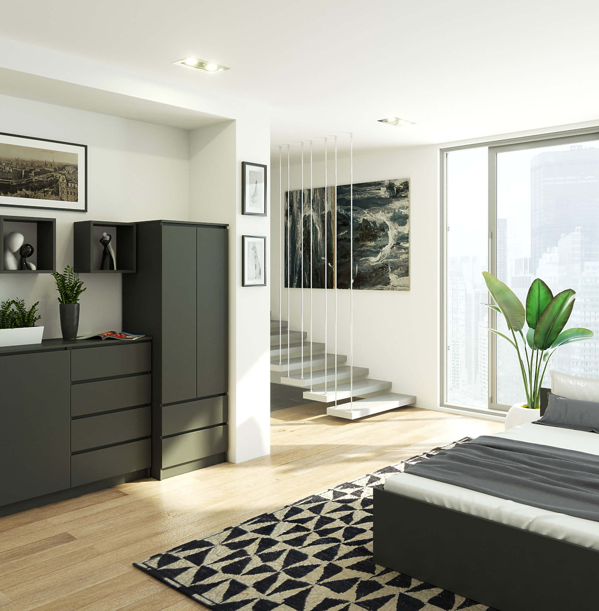 Skriňa s 2 dverami a 2 zásuvkami v grafitovej šedej farbe. .. viac