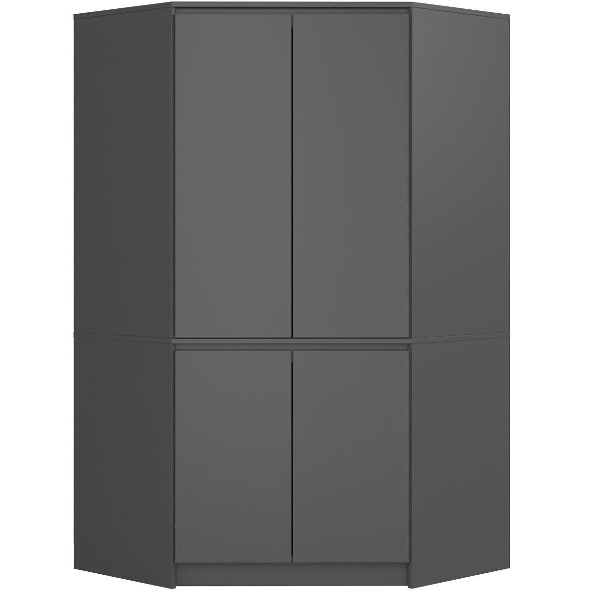 Štvordverová šatníková skriňa je vyrobená z oderuvzdornej laminovanej dosky. Korpus nábytku je celý v grafitovej šedej farbe. Vybavená tyčou a 6 policami, vďaka čomu má veľa úložného priestoru.