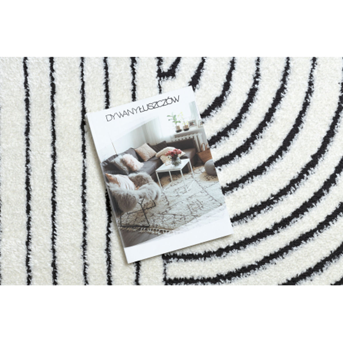Obdĺžnikový koberec s geometrickým vzorom v krémovej a čiernej farbe. .. viac