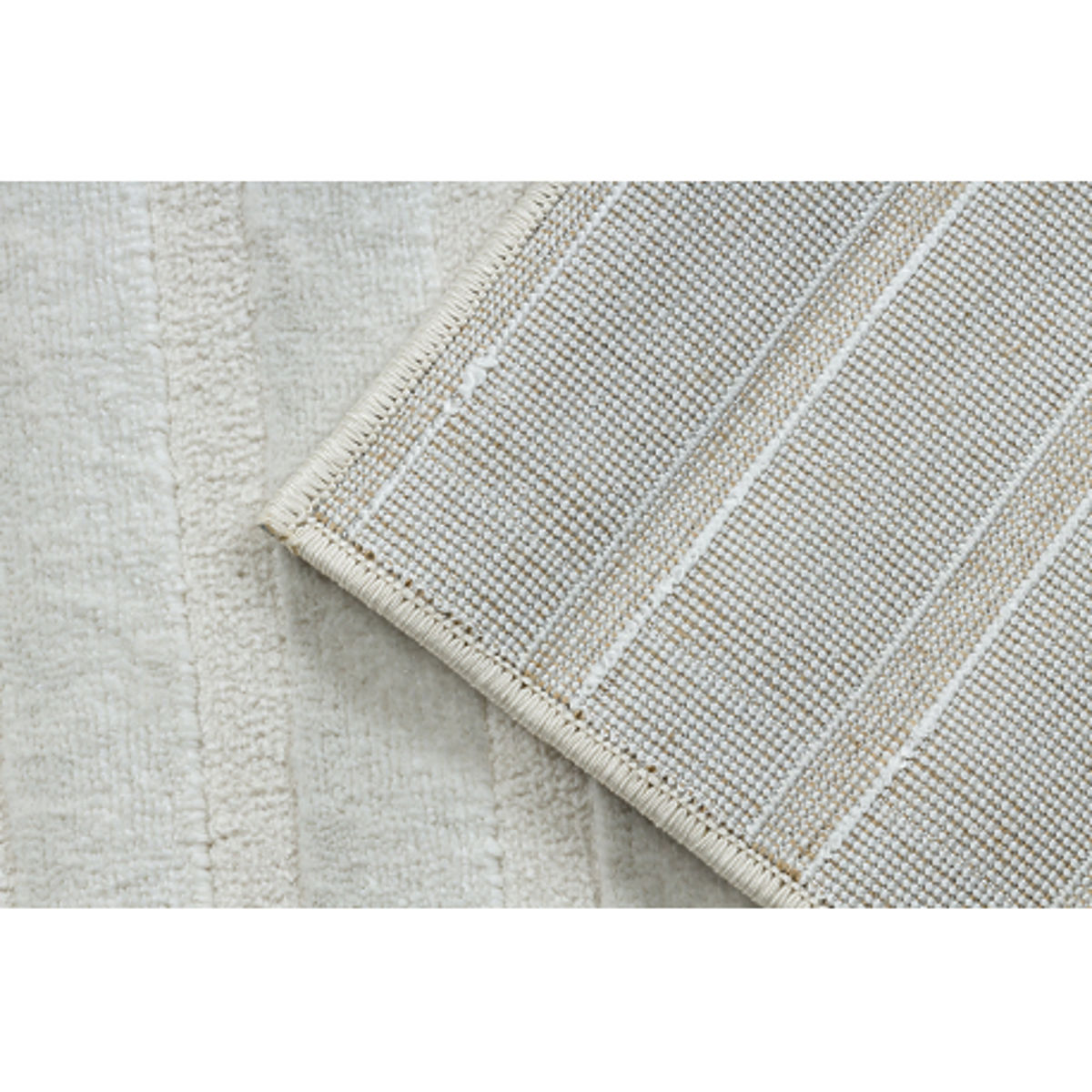 Krémový koberec s geometrickým a štrukturálnym dizajnom. .. viac