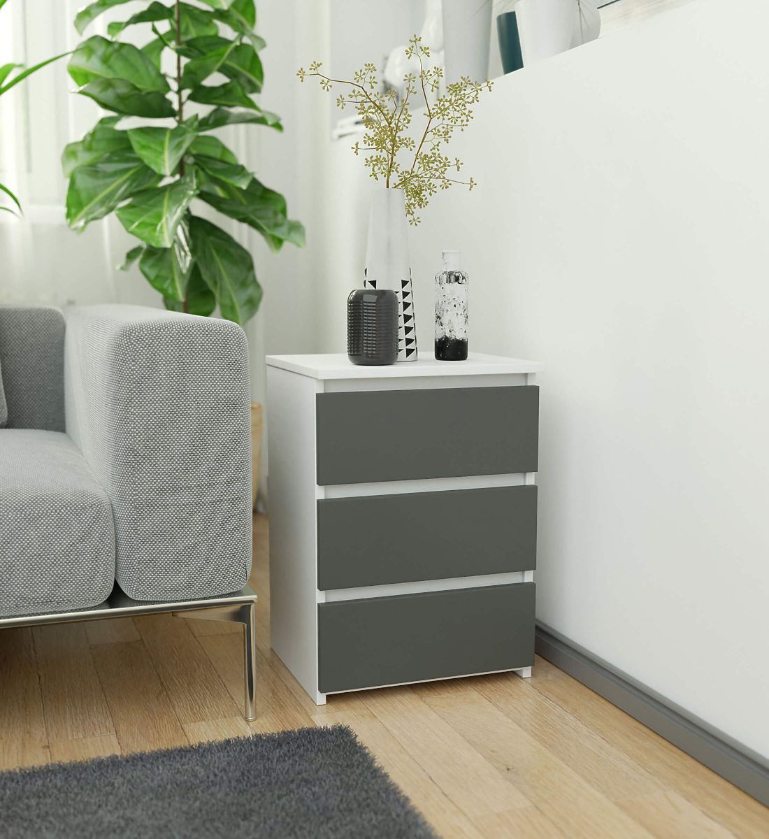 KOMODA CL3 40 CM 3SZ BIELA / GRAFITOVÁ ŠEDÁ