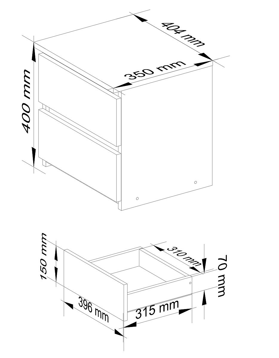 Nočný stolík CL2 40 cm s dvoma zásuvkami v štýlovom dubovom prevedení. .. viac