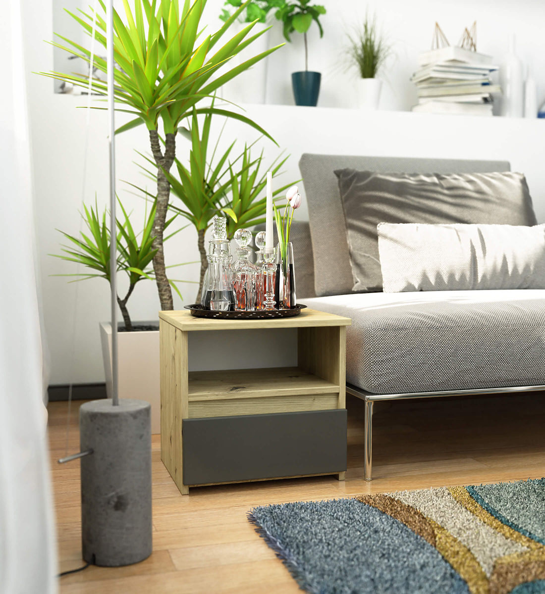Nočný stolík CL1 s jednou zásuvkou v dub artisan a grafit šedej. .. viac