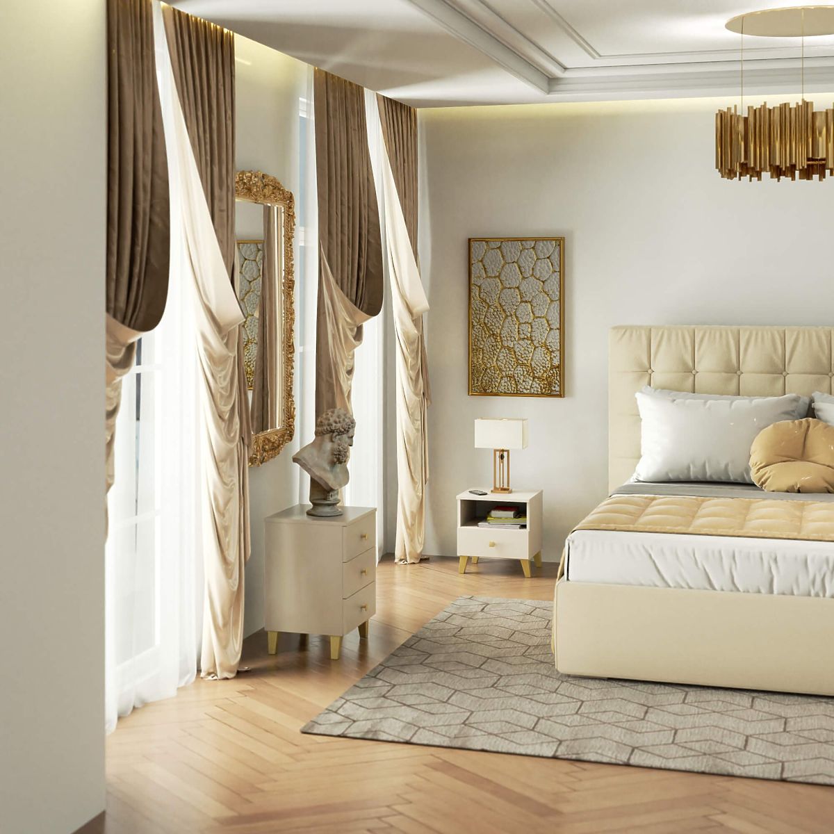 - moderný vzhľad - nábytok je jednoduchý vo forme, zaujme zaujímavou kombináciou farieb kašmíru so zlatom,
