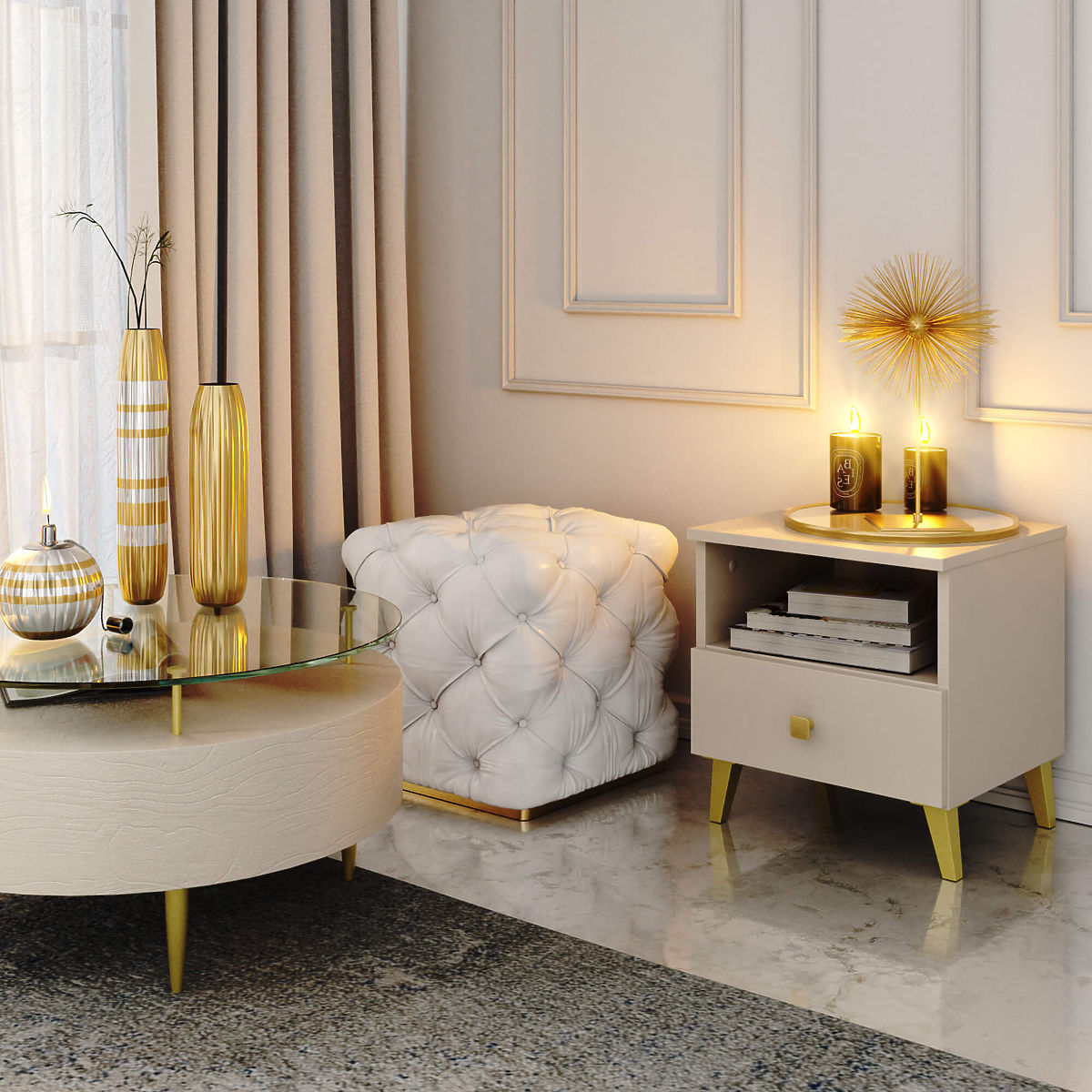 NOČNÝ STOLÍK MOBI 1 ZÁSUVKA 1 POLICA KAŠMÍR ZLATO