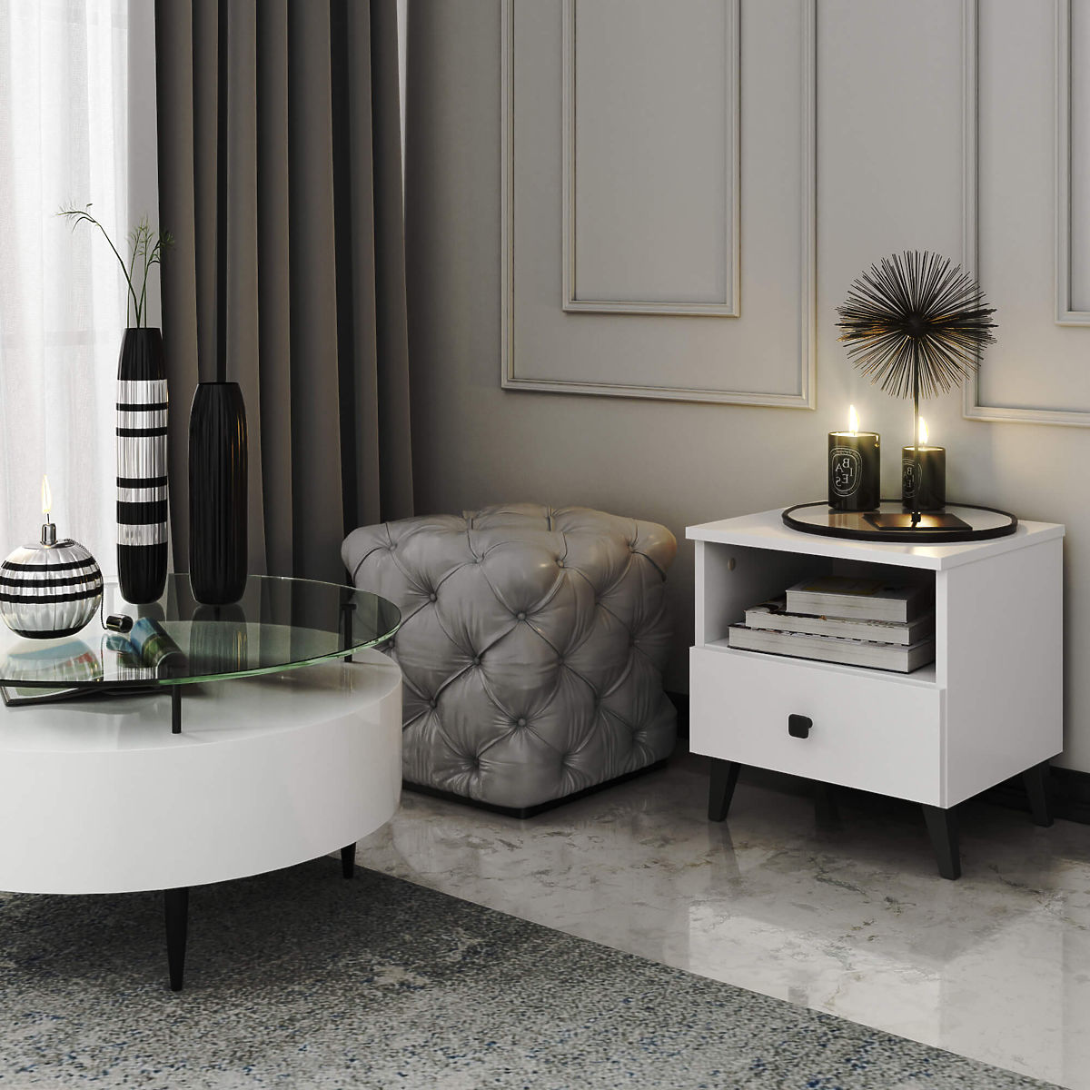 NOČNÝ STOLÍK MOBI 1 ZÁSUVKA 1 NIKA BIELA ČIERNA