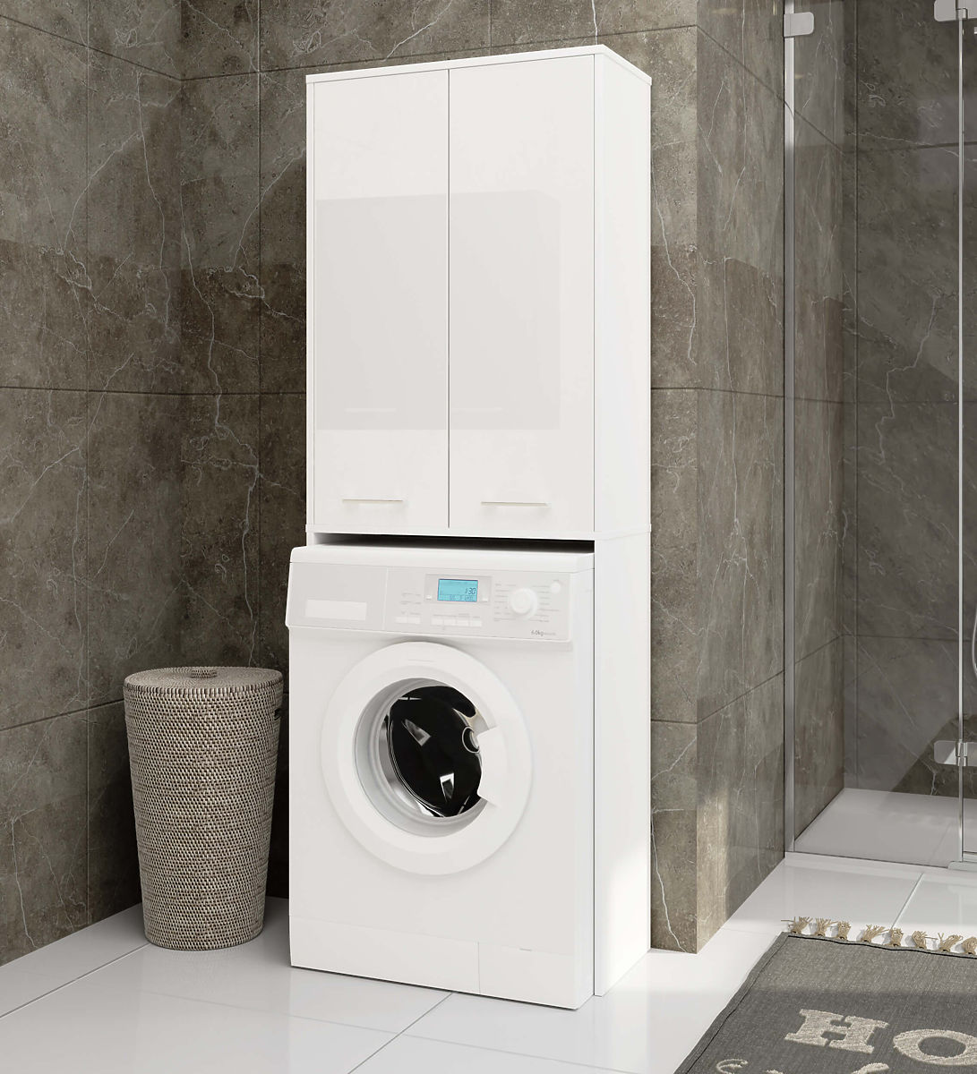 Ak chceme, aby naša kúpeľňa bola zariadená pohodlne a zároveň štýlovo, mali by sme sa rozhodnúť pre solídne a funkčne spracovaný nábytok. Takým je určite skrinka nad práčku. Je to ideálny spôsob, ako využiť priestor nad práčkou, ktorý obvykle zostáva nevyužitý. Optimálne rozmery tohto stĺpa z neho robia skvelé riešenie pre kúpeľne s malou plochou. Ergonomický tvar umožňuje jeho využitie v každej miestnosti. Tento nábytok, pozostávajúci z nadstavca nad práčku a skrinky nad ním, vytvára veľké množstvo úložného priestoru pre rôzne predmety. Do skrinky uložíme napríklad detergenty alebo hygienické prostriedky. Tieto police sú určené na ukladanie osobnej kozmetiky alebo uterákov. Krásny odtieň bielej s lesklými bielymi čelnými plochami zaručuje elegantný vzhľad kúpeľne. Laminovaná doska, z ktorej je táto skrinka vyrobená, je vysoko kvalitný materiál. Zaisťuje trvanlivosť a pevnosť nábytku, rovnako ako zachovanie jeho estetického vzhľadu.