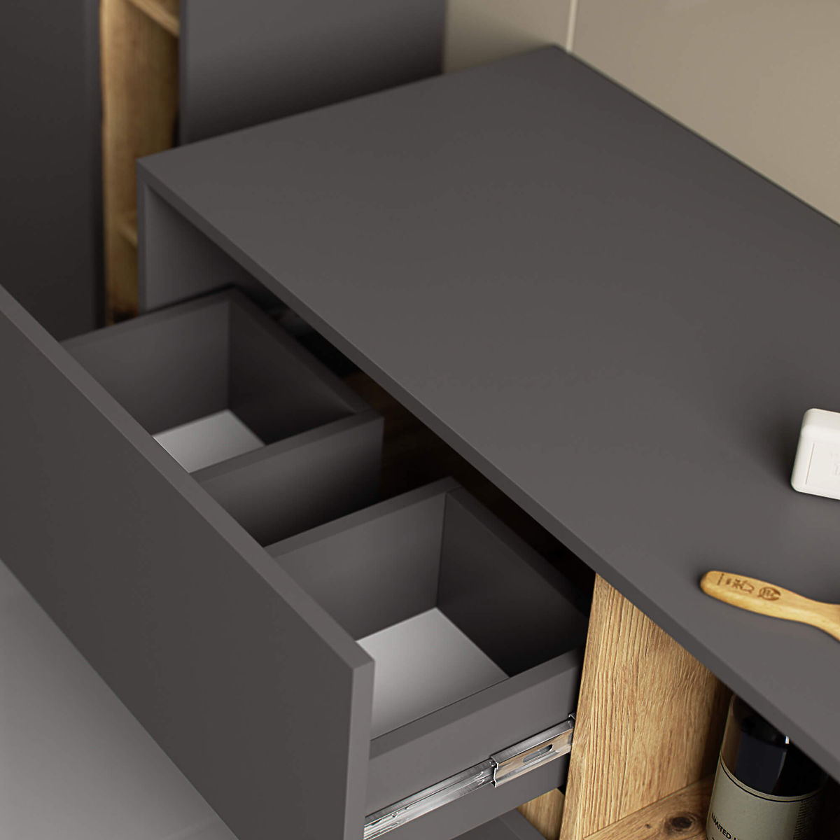 Lukahome.sk » Kúpeľňa a WC / Kúpeľňové skrinky / KÚPEĽŇOVÁ SKRINKA POD UMÝVADLO VAMI W 90 cm 2 ZÁSUVKY GRAFITOVÁ SIVÁ / DUB ARTISAN