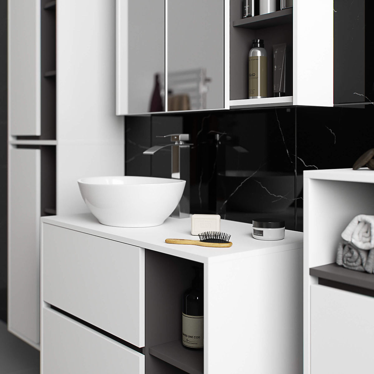 Lukahome.sk » Kúpeľňa a WC / Kúpeľňové skrinky / KÚPEĽŇOVÁ SKRINKA POD UMÝVADLO S OTVORMI VAMI W90 UM 2SZ 2P BIELA / GRAFITOVÁ SIVÁ