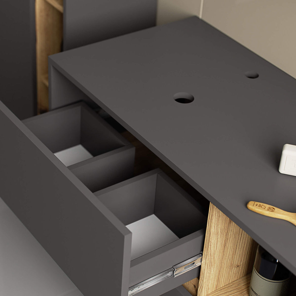 Lukahome.sk » Kúpeľňa a WC / Kúpeľňové skrinky / KÚPEĽŇOVÁ SKRINKA POD UMÝVADLO S OTVORMI VAMI W90 UM 2SZ 2P GRAFITOVÁ ŠEDÁ / DUB ARTISAN