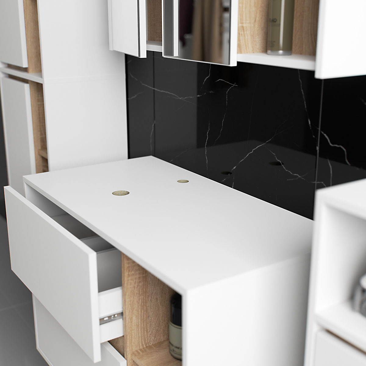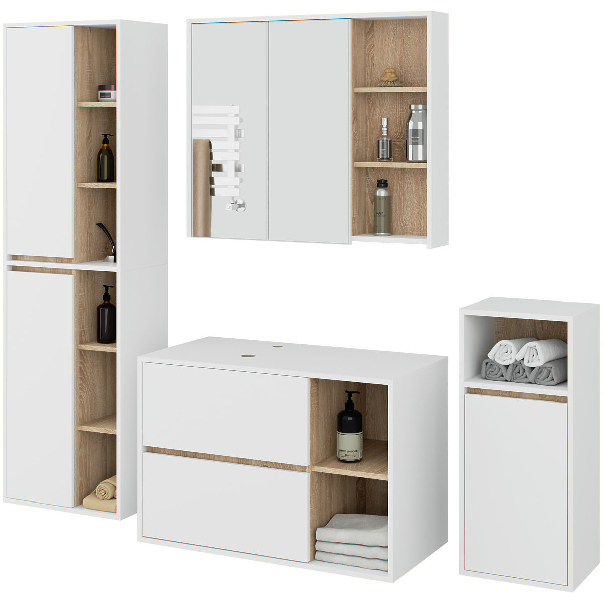 Lukahome.sk » Kúpeľňa a WC / Kúpeľňové zostavy / SADA ZÁVESNÉHO KÚPEĽŇOVÉHO NÁBYTKU S OTVORMI VAMI BIELA / DUB SONOMA