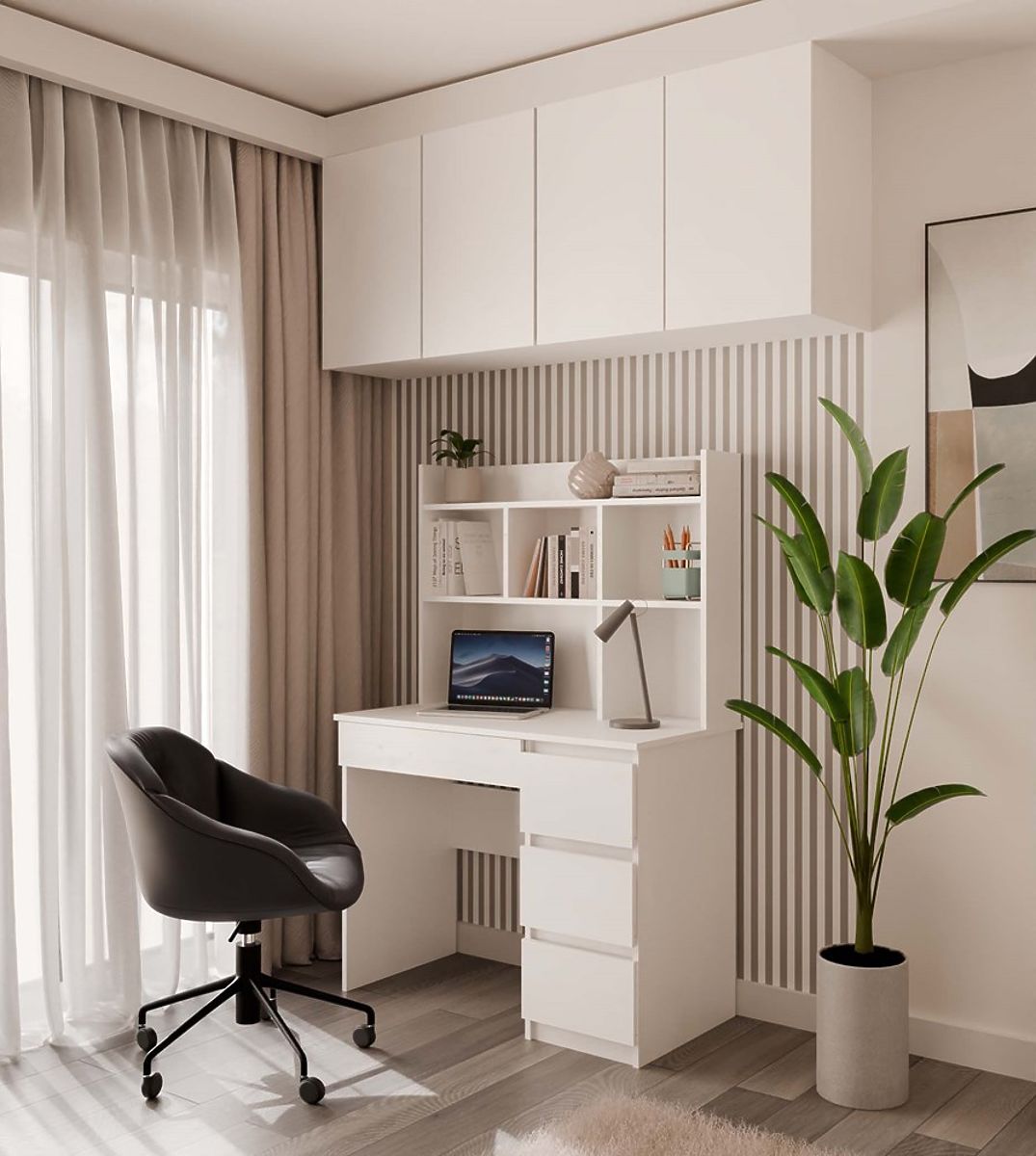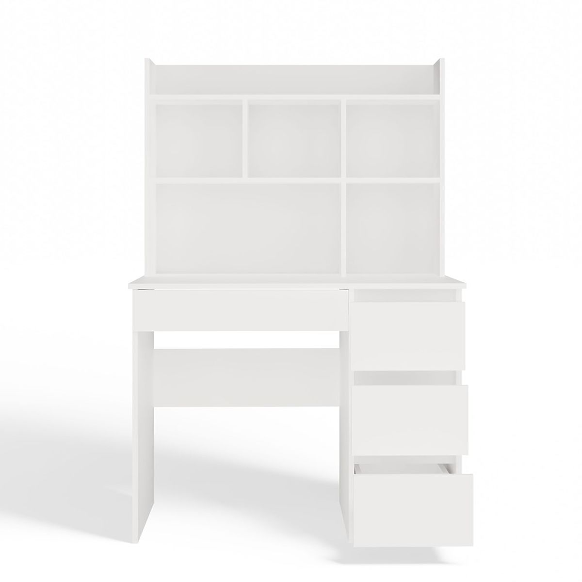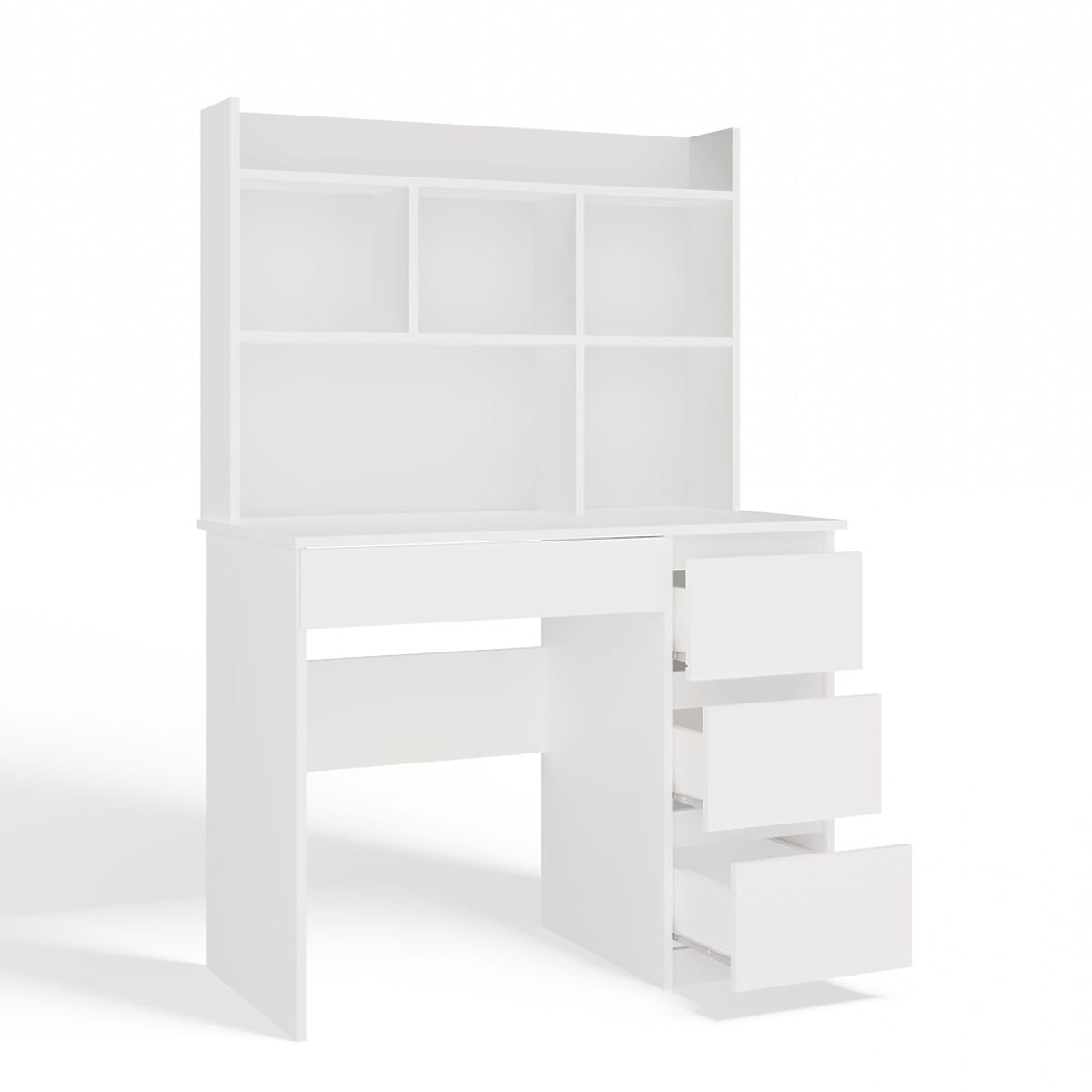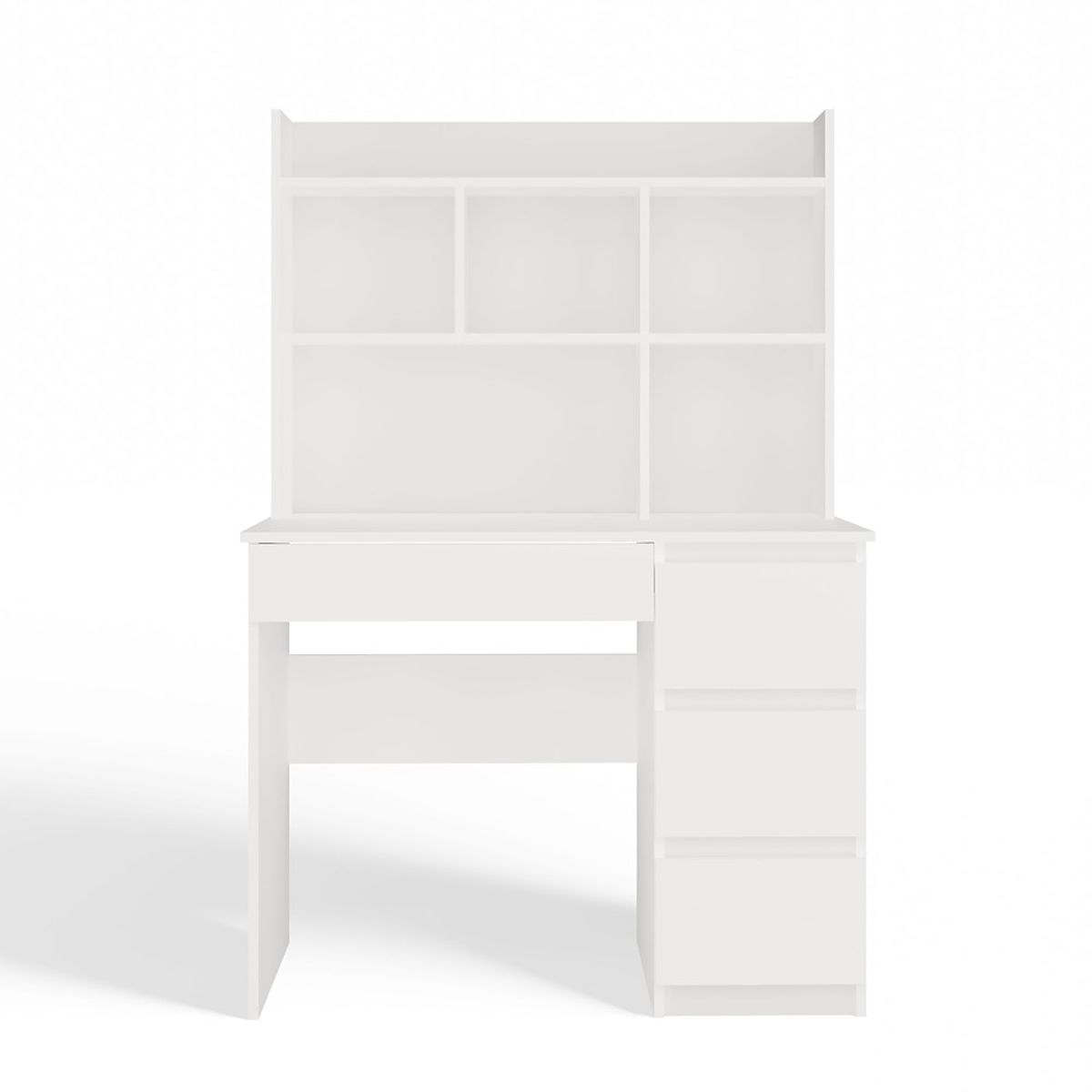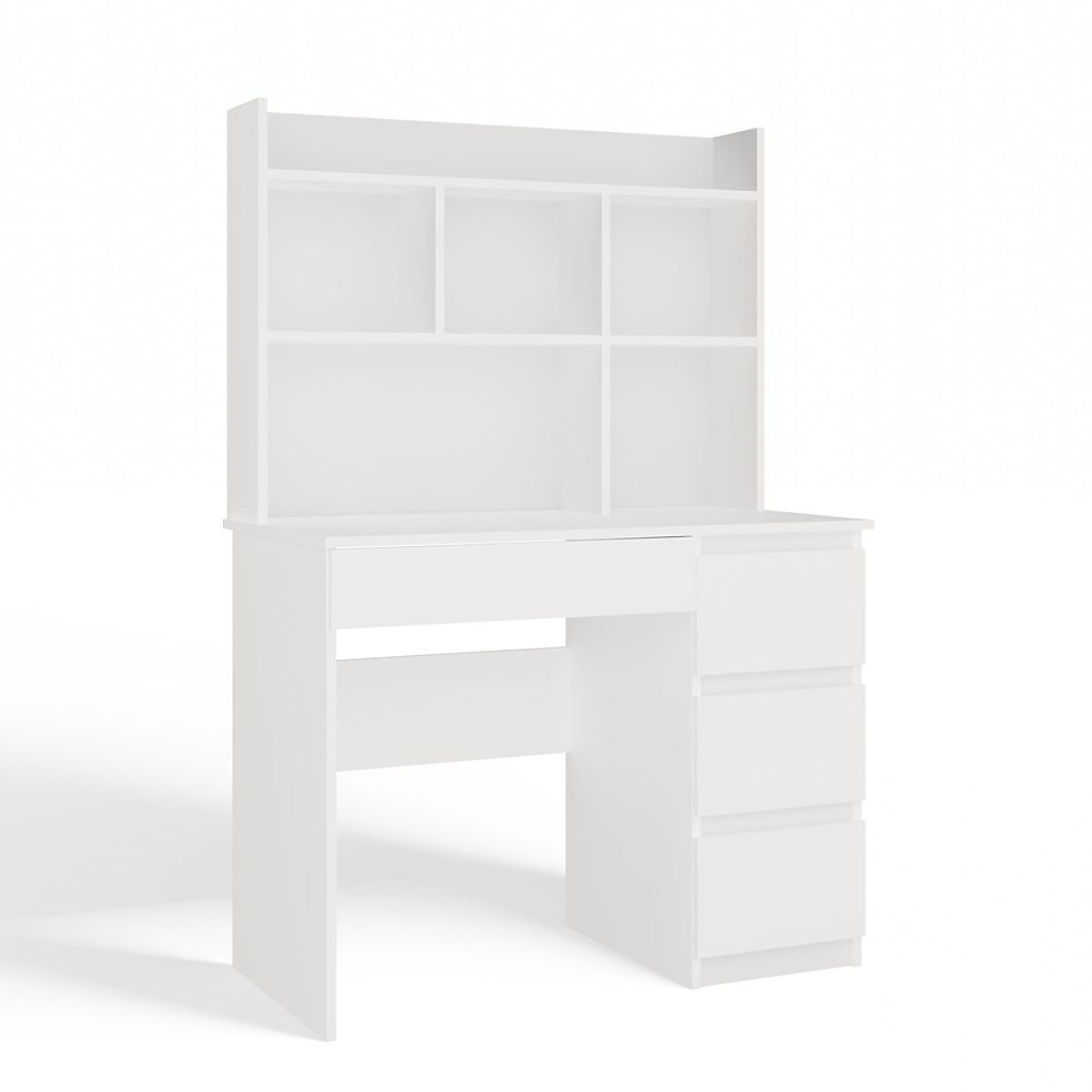 Lukahome.sk » Stoly a stolíky / Písacie stoly / Písací stôl MIJAS Pravý s Nástavcom Biely Mat 4 Zásuvky 4 Poličky Do Kancelárie Izby