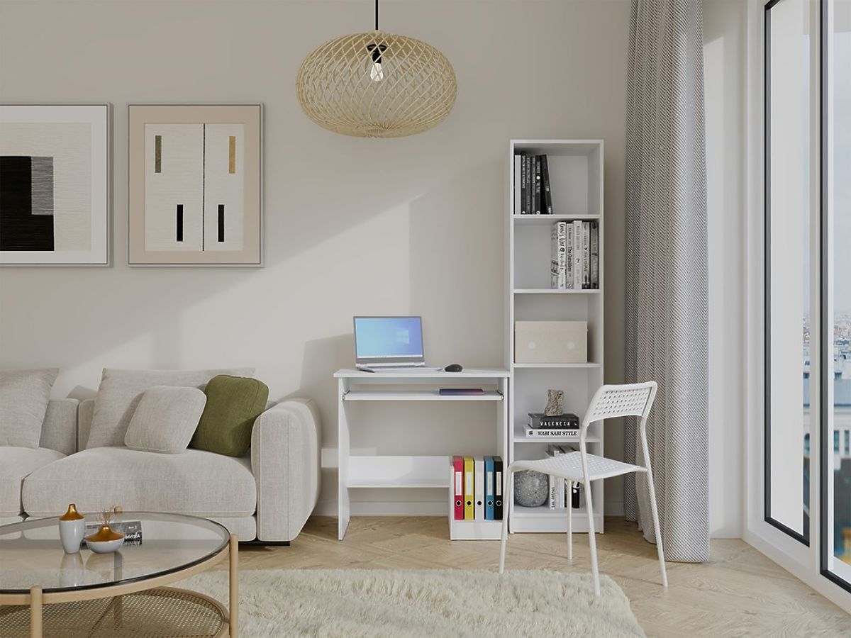 Písací stôl ROSA je kompaktný a zároveň veľmi funkčný nábytok, ktorý sa skvele hodí do malých priestorov - ako do detskej, študentskej izby, tak aj do domácej kancelárie. Vďaka minimalistickému dizajnu a matnej bielej farbe sa stôl ideálne hodí do moderných interiérov a opticky zväčšuje priestor.
