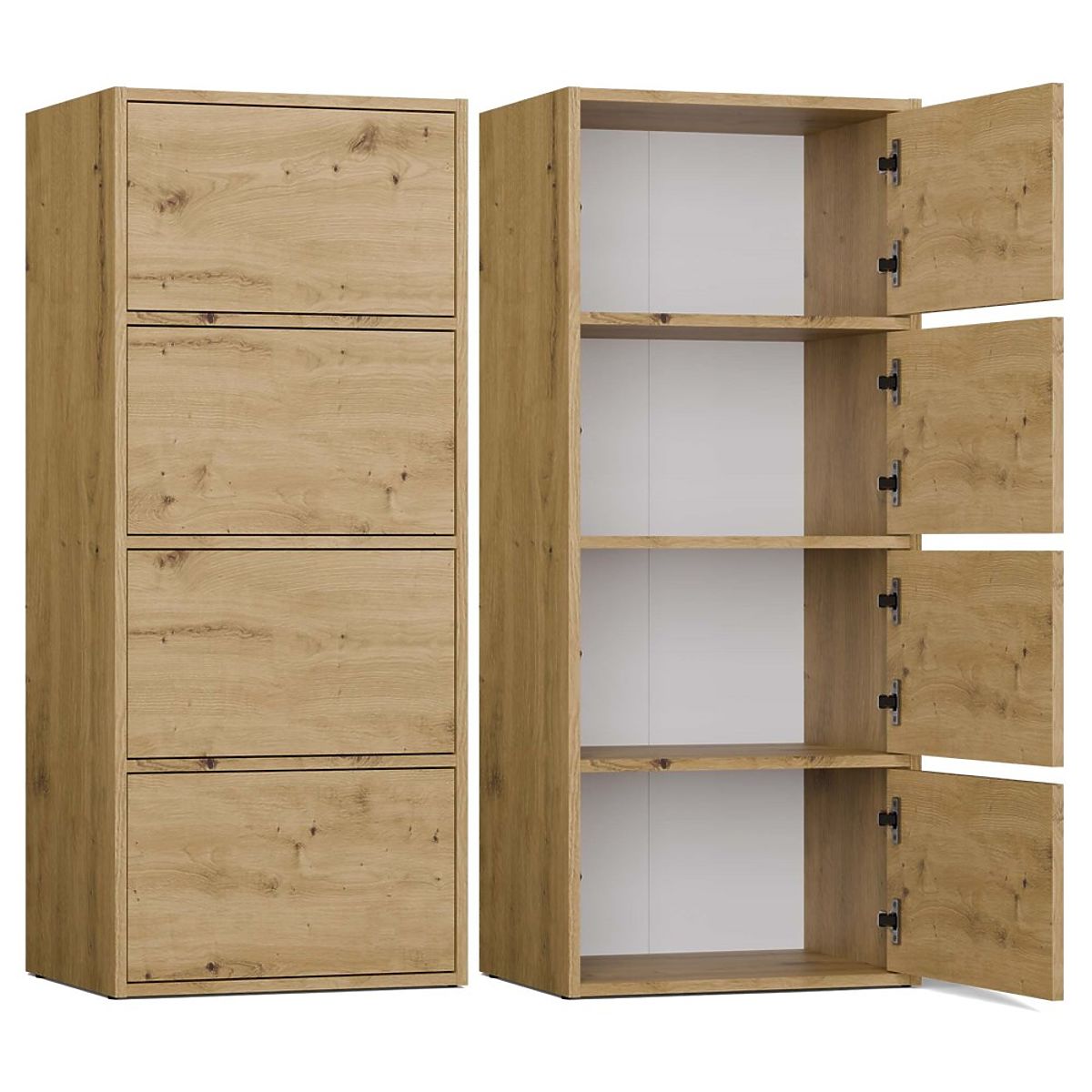 Vďaka priestranným policiam skrytým za hladkými dverami poskytuje komoda množstvo úložného priestoru a uľahčuje udržiavanie poriadku v každom priestore.