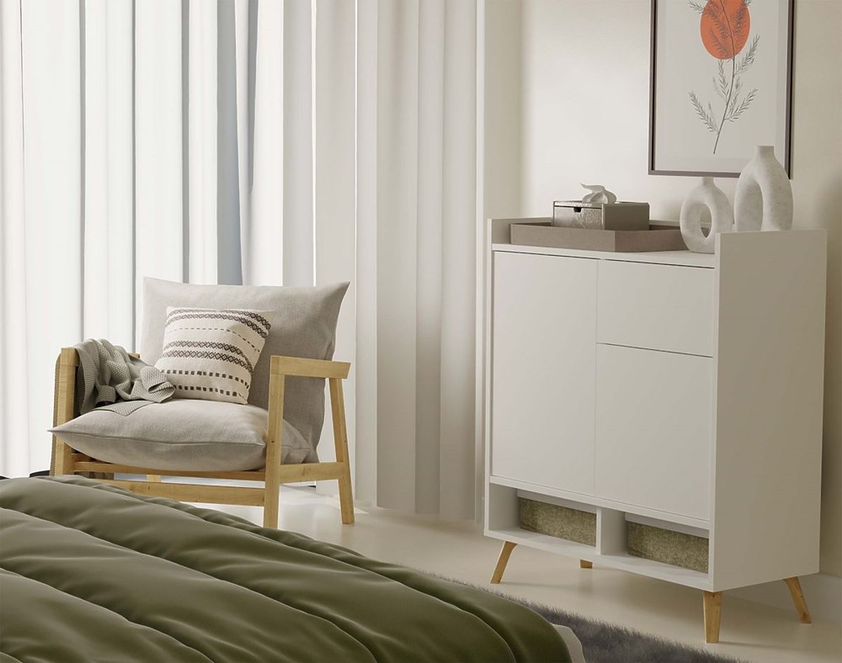 Komoda COLIN Skrinka 2 Dvere 1 Zásuvka S Nohami BIELA