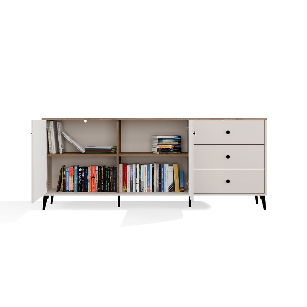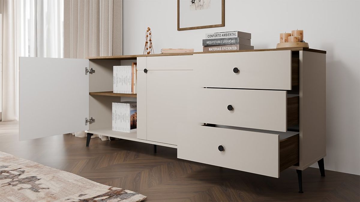 Usporiadanie 2 dverí a 3 zásuviek poskytuje dostatok úložného priestoru – ako pre každodenné potreby, tak pre veci, ktoré chceme mať mimo dohľadu.