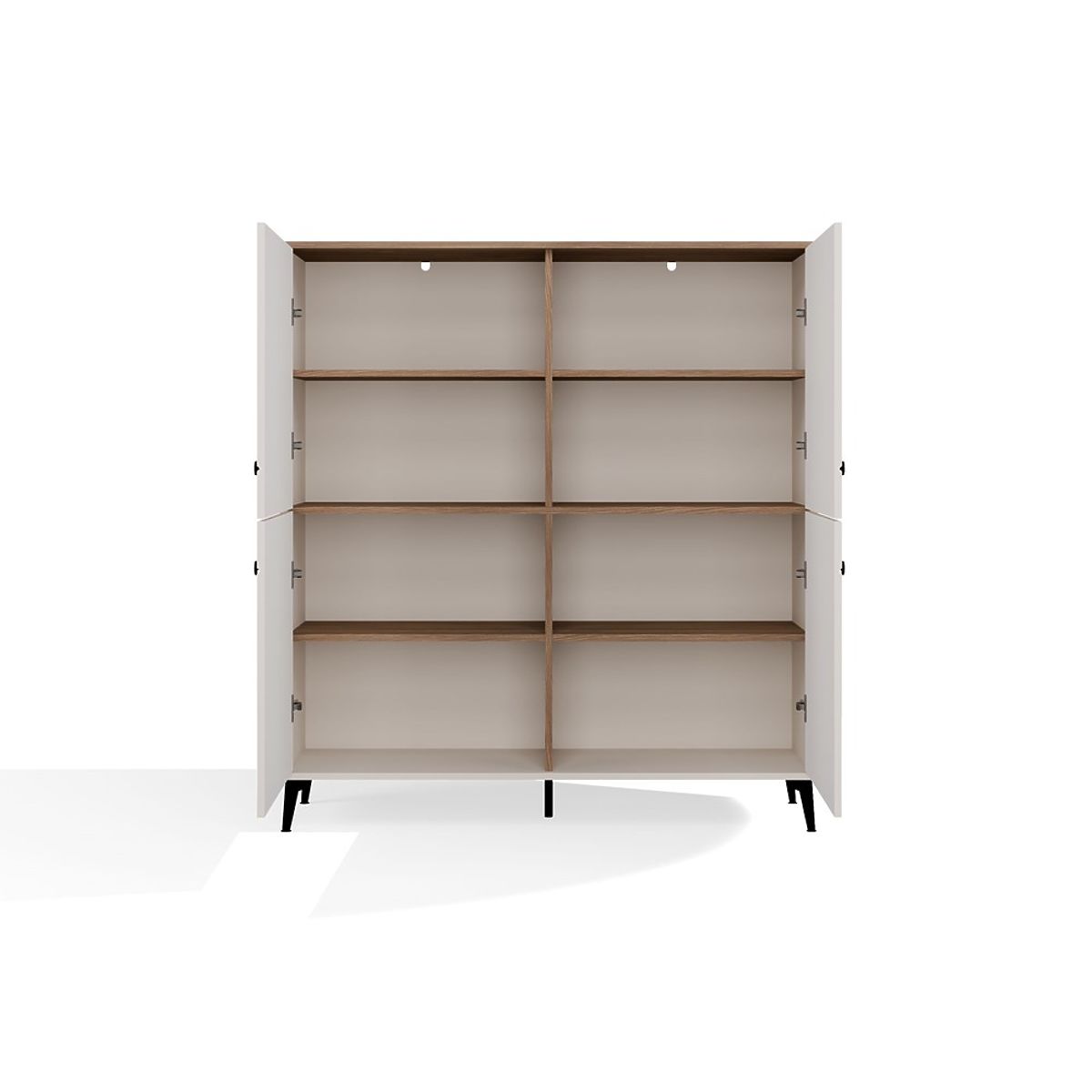 Model je vybavený štyrmi prednými stranami s tichým zatváraním, za ktorými sa skrýva až osem praktických políc – ideálnych na uloženie kníh, dokumentov, textílií alebo každodenných doplnkov.