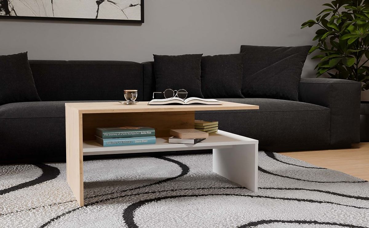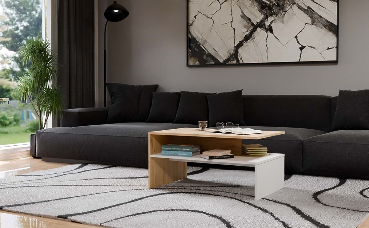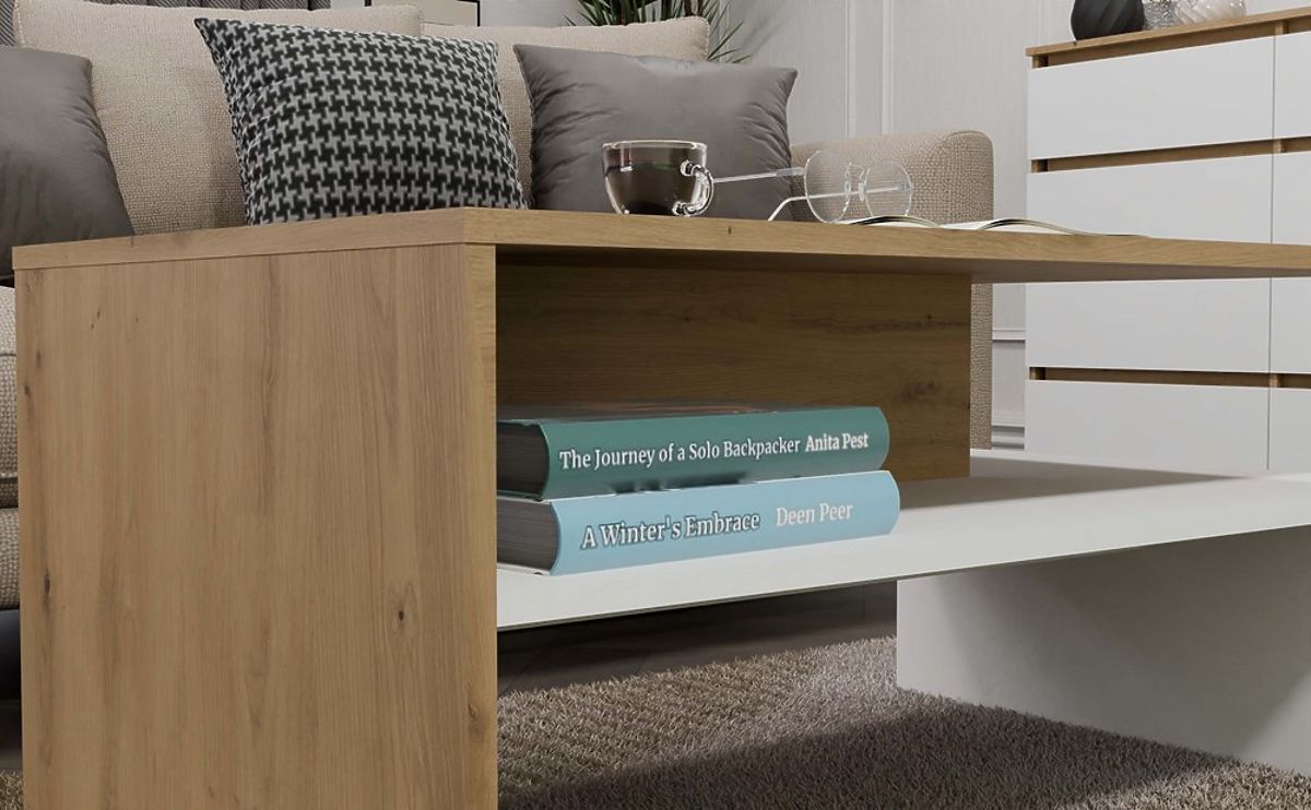 Moderný stolík z dubu artisan a bielej pre obývačku. .. viac