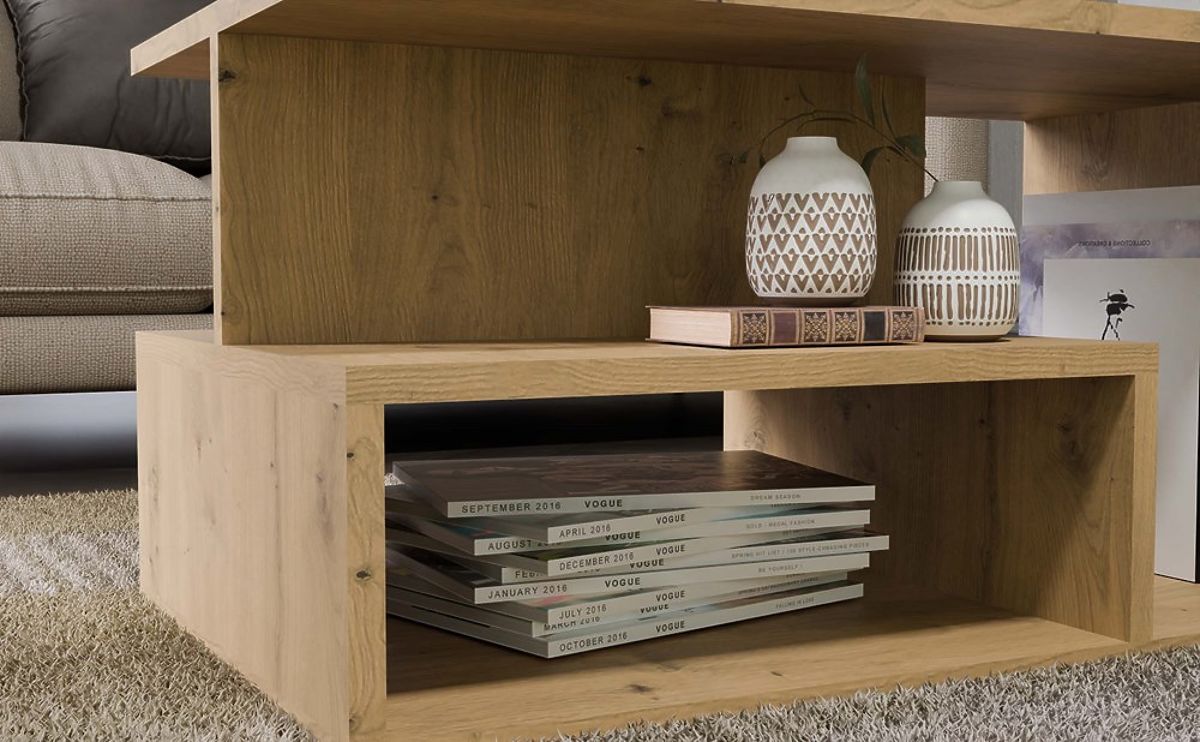 Kávový stolík z pevnej laminovanej dosky s prídavnou policou. .. viac