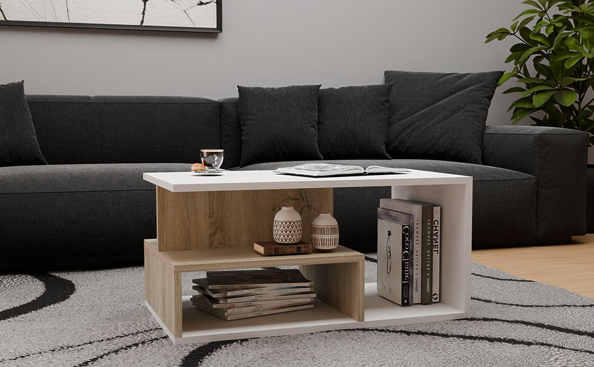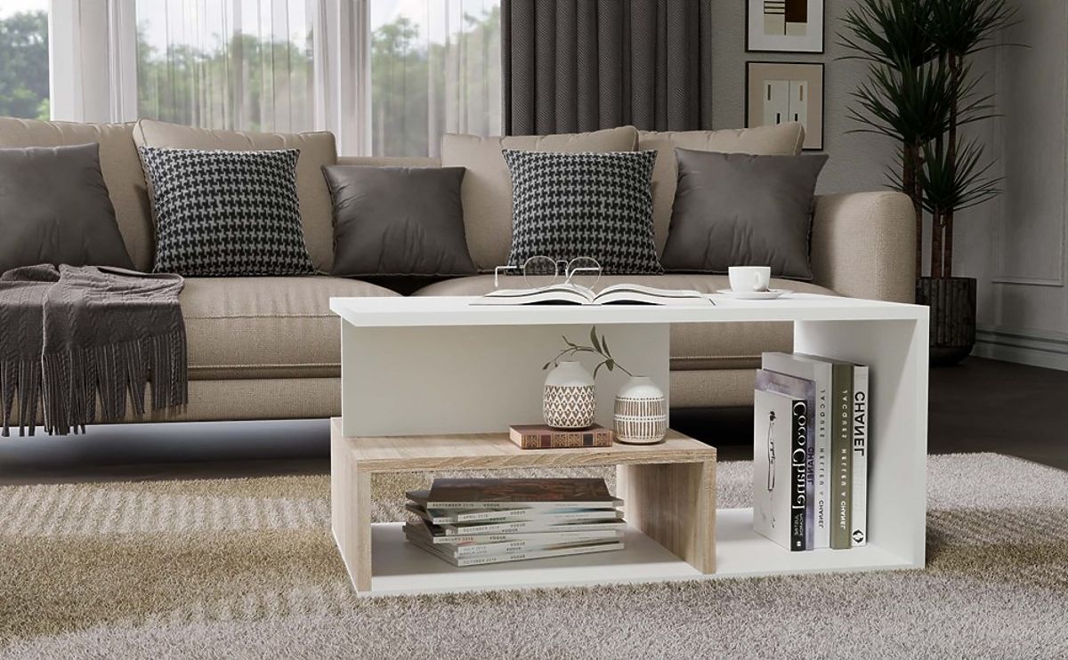 Kávový stolík z laminovanej dosky s dodatočnou policou. .. viac