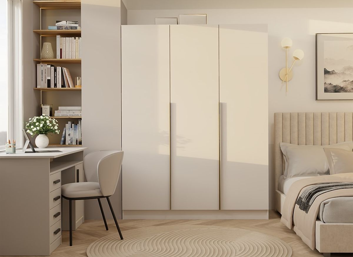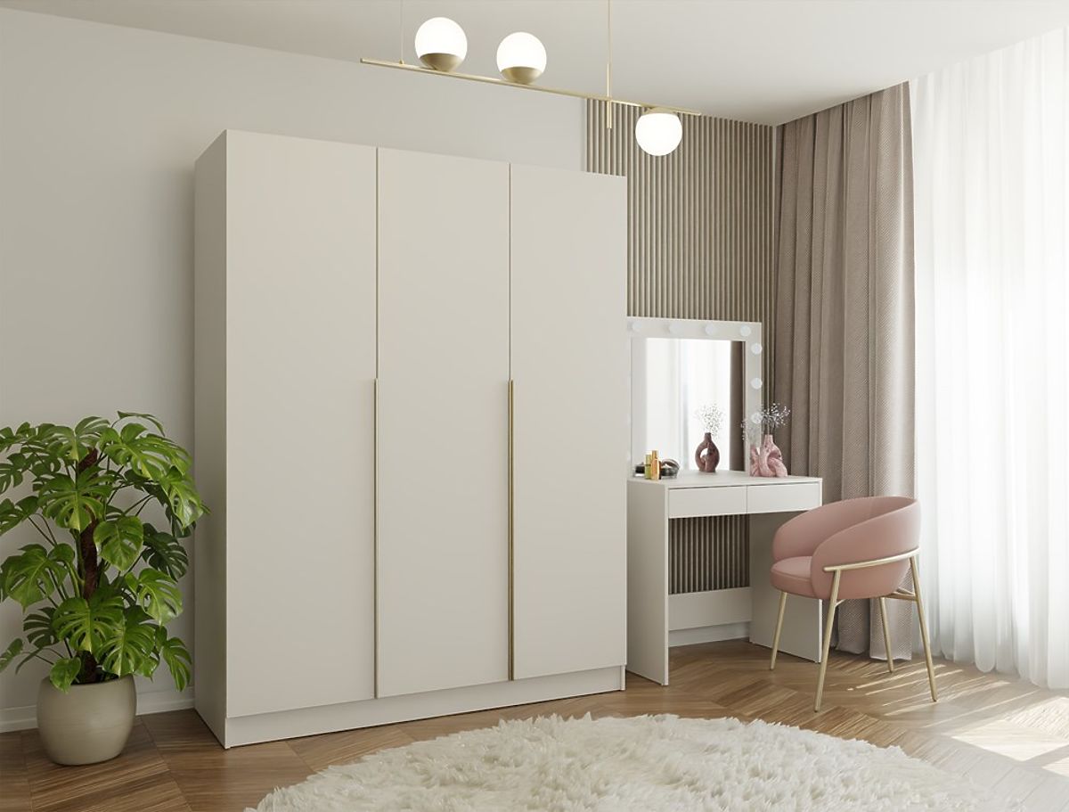 Ak hľadáte kombináciu minimalizmu, elegancie a výnimočnej funkčnosti, skriňa SENSO 3D je práve pre vás. Táto trojdverová skriňa zaujme jednoduchou formou, matným povrchom vo farbe kašmíru a charakteristickými zlatými úchytmi v odtieni kartáčovaného zlata, ktoré podčiarkujú jej luxusný charakter.