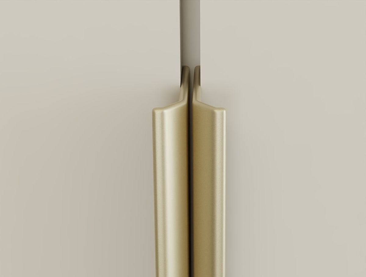 - Minimalistická predná časť + dekoratívne úchyty v farbe kartáčovaného zlata – elegancia bez preháňania.