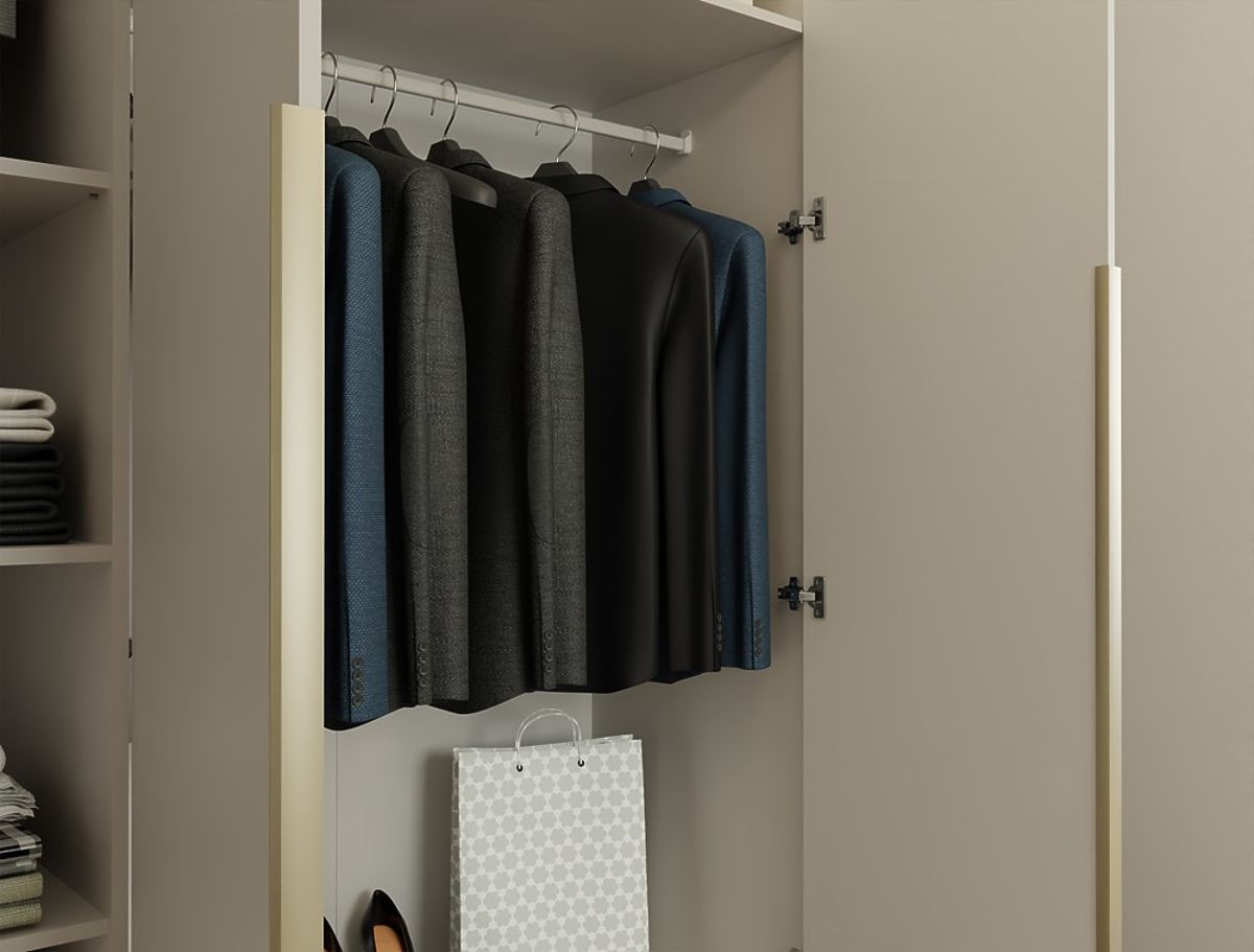 Model SENSO 4D bol navrhnutý s ohľadom na maximálne pohodlie užívania. Vo vnútri sa nachádza až 11 priestranných políc a široká časť s tyčou na vešiaky – ideálna pre bundy, kabáty, obleky alebo šaty. Skriňa pojme všetko, čo potrebujete, či už sa nachádza v spálni, šatni alebo predsieni.