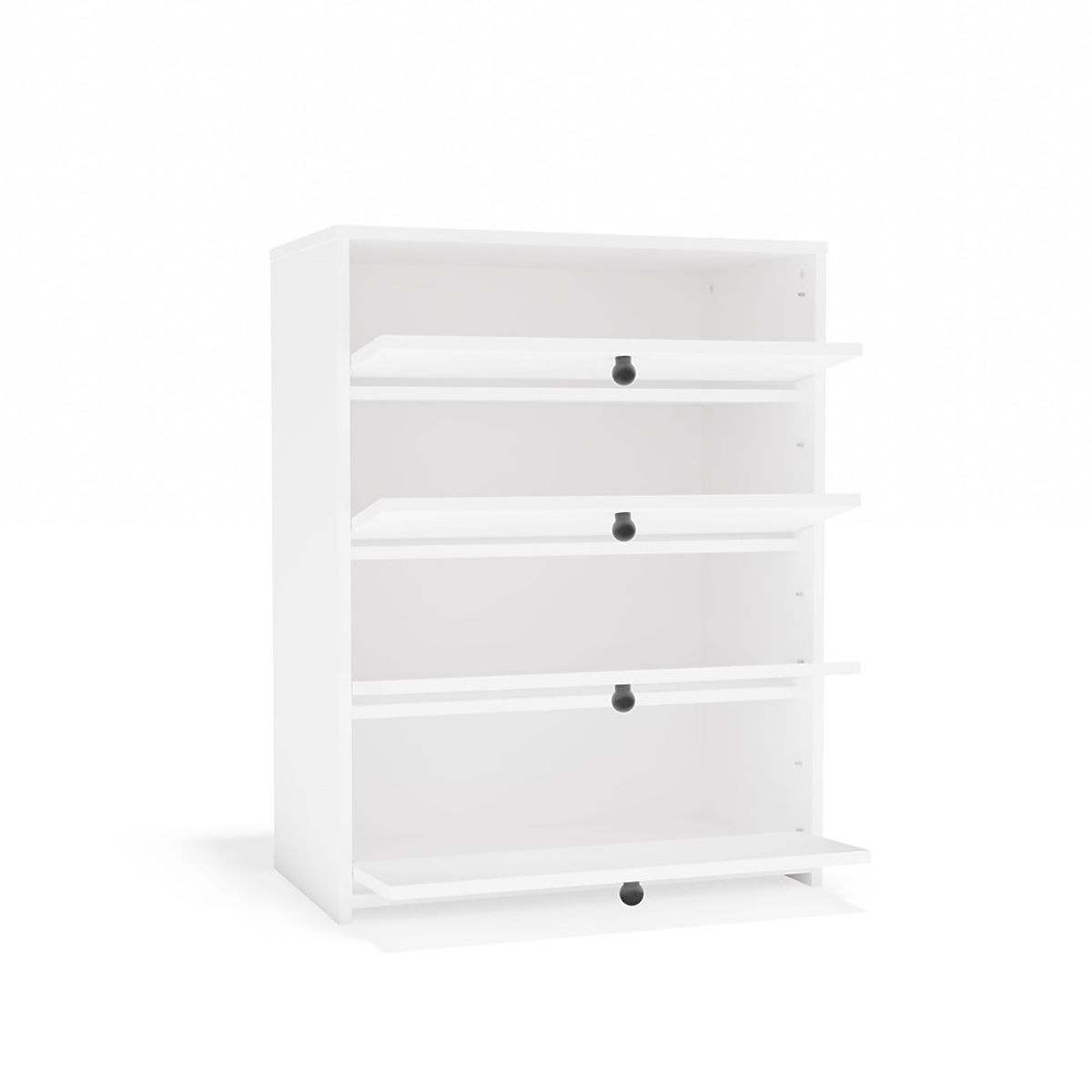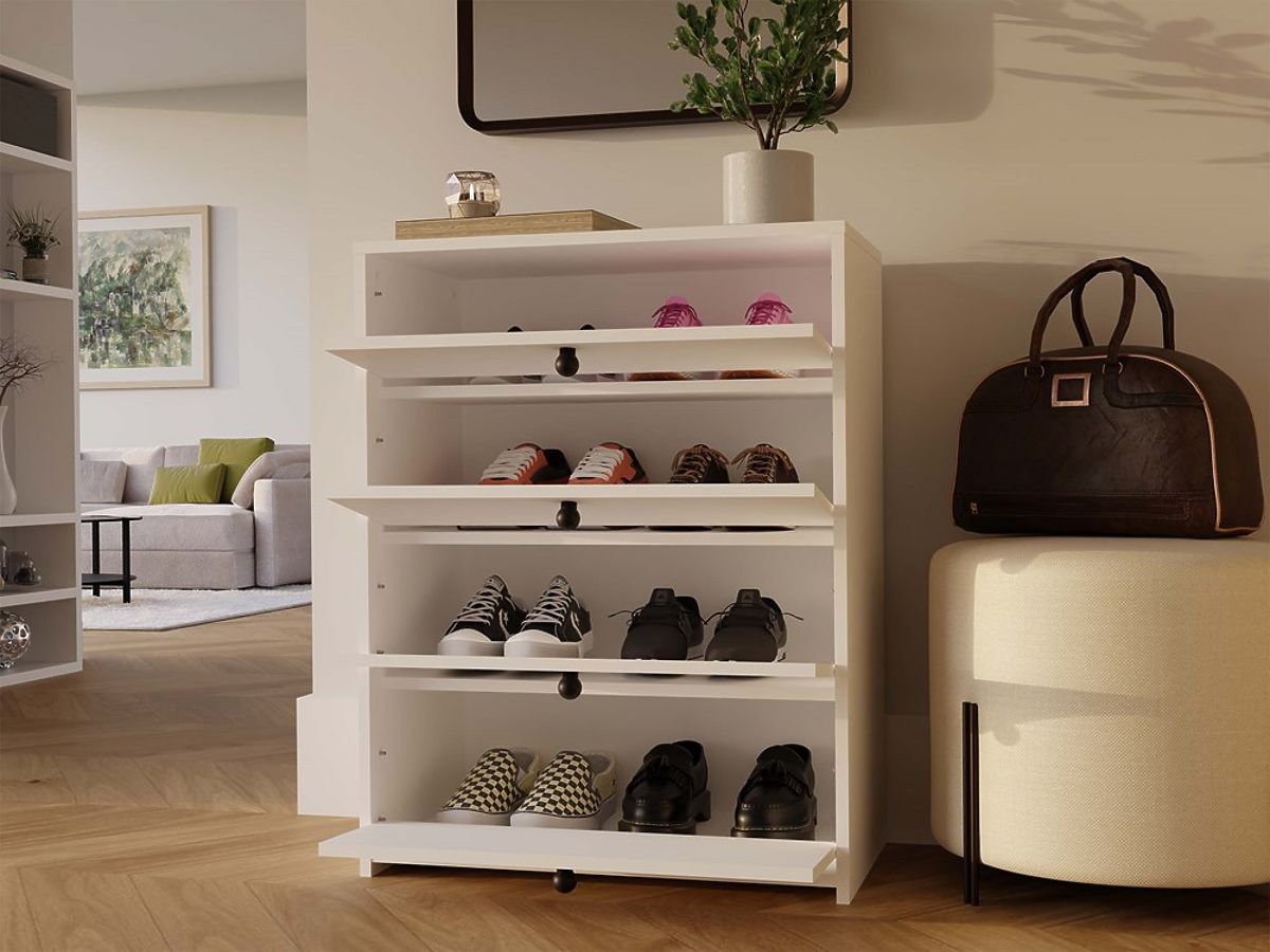 Minimalistická forma a univerzálna biela farba zabezpečujú, že botník ľahko zapadne do rôznych aranžmánov - od klasických po moderné. Môže slúžiť ako samostatný prvok alebo byť súčasťou väčšej nábytkovej zostavy do predsiene.