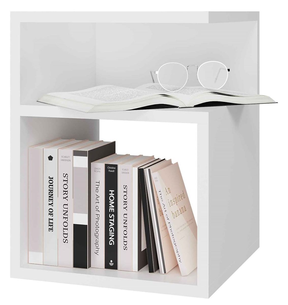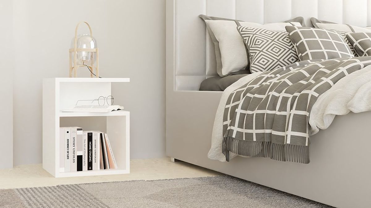 Moderný biely nočný stolík s minimalistickým dizajnom. .. viac