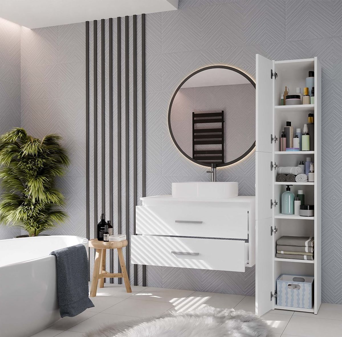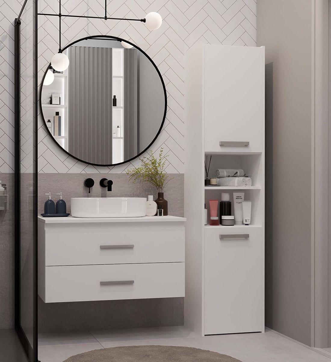 NEL 80 je praktická kúpeľňová skrinka, ktorá sa skvele hodí do moderných interiérov, ako stredne veľkých, tak menších.