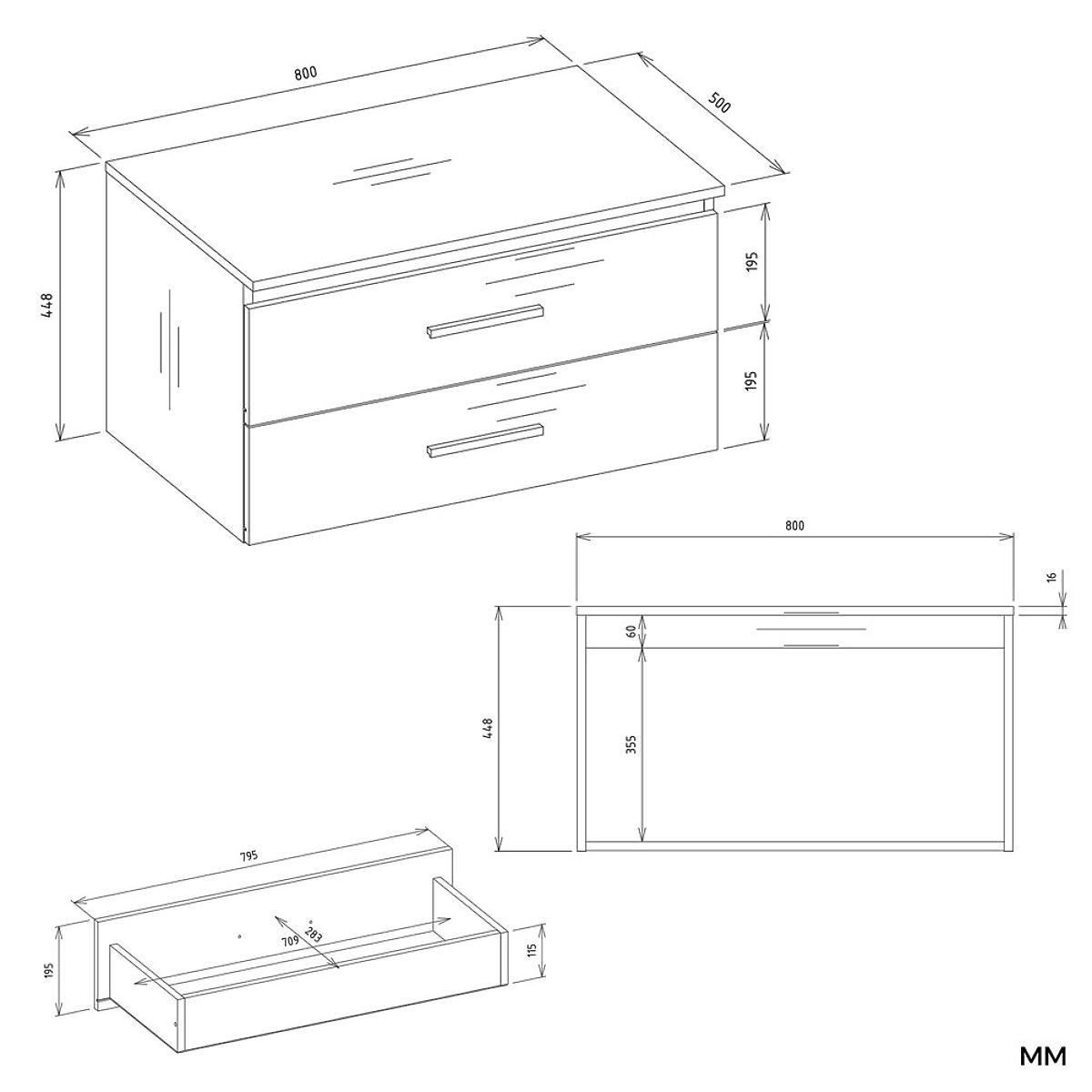 Skrinka bola navrhnutá ako základňa pre umývadlo na dosku (umývadlo nie je súčasťou balenia – je potrebné ho vybrať samostatne podľa vlastných preferencií).