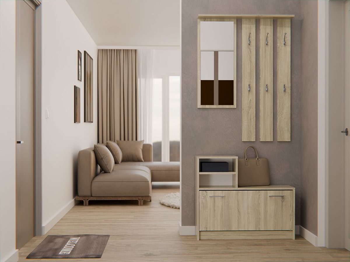 Praktická šatníková skriňa s vešiakmi a zrkadlom v dubovom dekore. .. viac