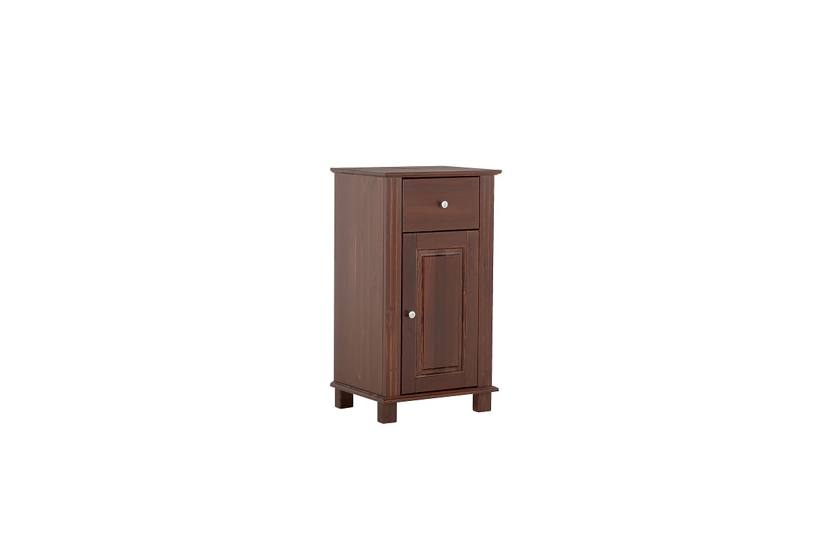 Spodná skrinka z prírodného dreva s jednými dverami a zásuvkou. .. viac