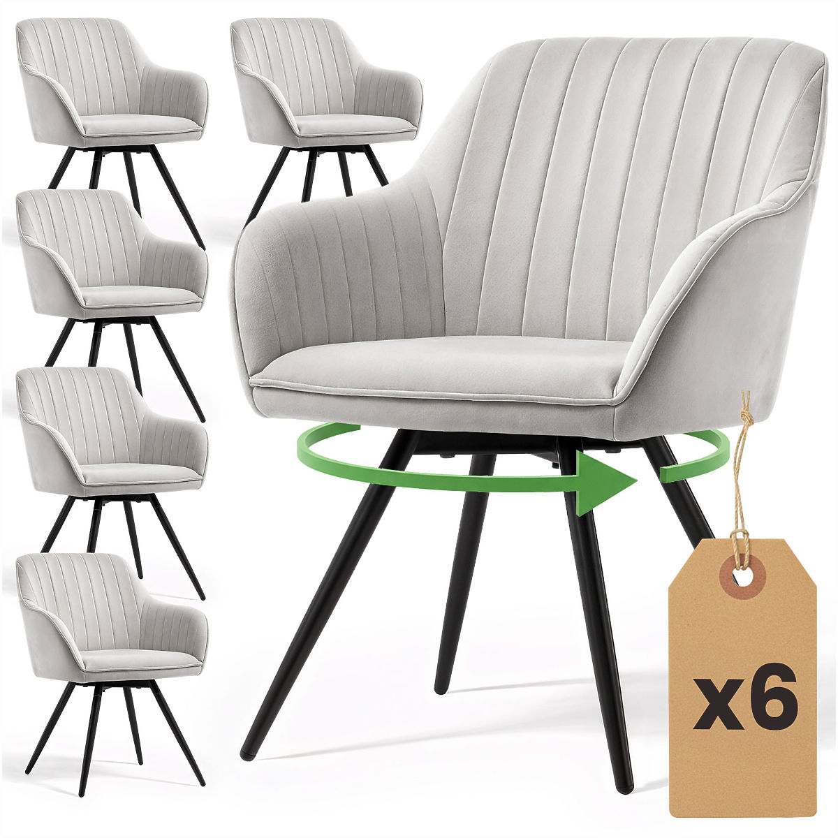 Lukahome.sk » Jedáleň a kuchyne / Jedálenský stoličky / 6x Zamatová otočná stolička s prešívaním Sivá TURNO Čierne nohy