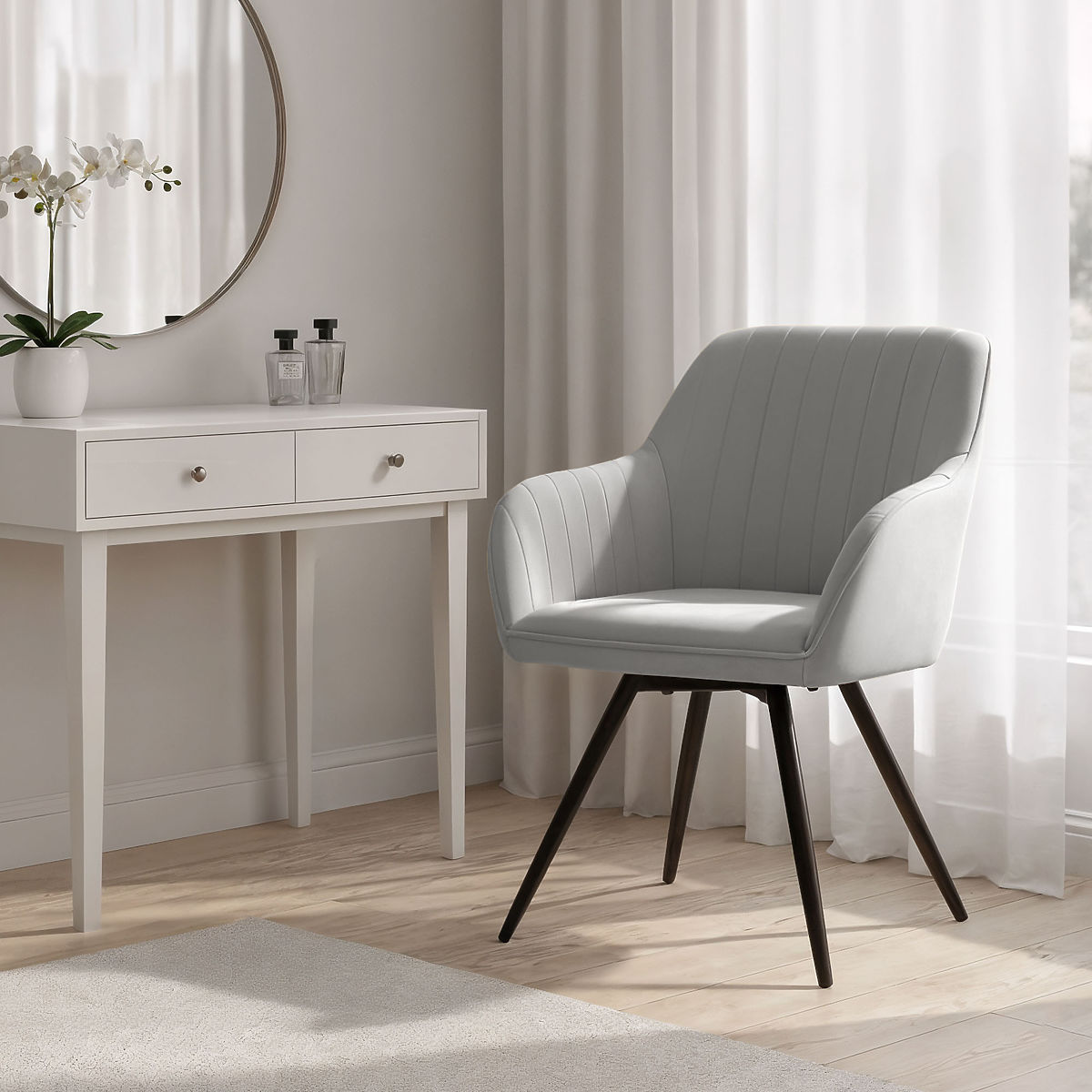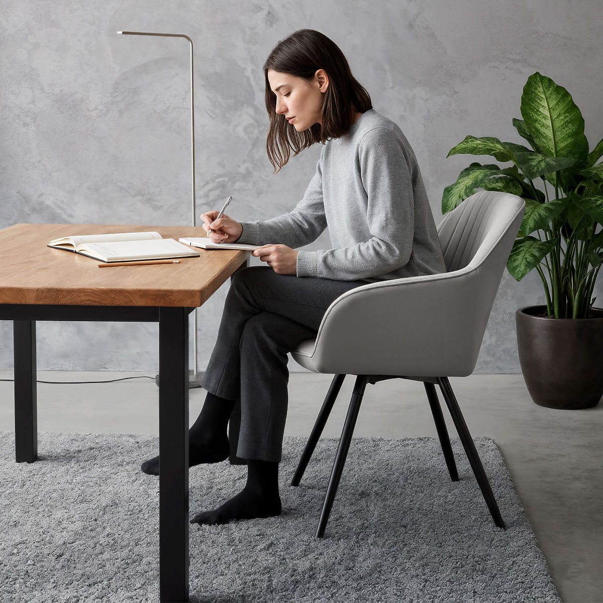 Otočná stolička TURNO je určená pre milovníkov moderných, chytrých a praktických riešení. Stolička sa otáča v rozsahu 360°, čo zaisťuje výnimočné pohodlie pri používaní. Skvele sa osvedčuje najmä v malých priestoroch – nie je potrebné ju odsúvať, čo znamená, že zaberá menej miesta ako bežná stolička. O pohodlie pri sedení sa stará elegantné, zamatové čalúnenie s vertikálnym prešívaním a výplň z peny s vysokou hustotou. Otočná stolička TURNO sa dokonale hodí do interiérov v industriálnom, modernom alebo mid-century modern štýle.