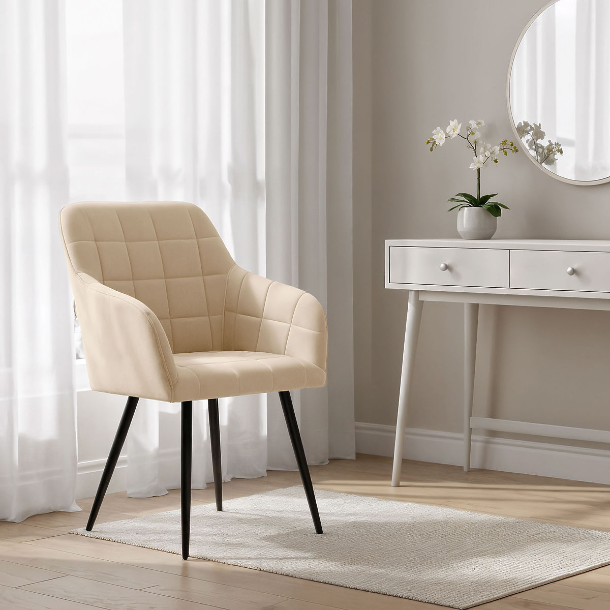 Lukahome.sk » Jedáleň a kuchyne / Jedálenský stoličky / 4x Čalúnená stolička so štvorcovým prešívaním Béžová LUXANO Čierne nohy