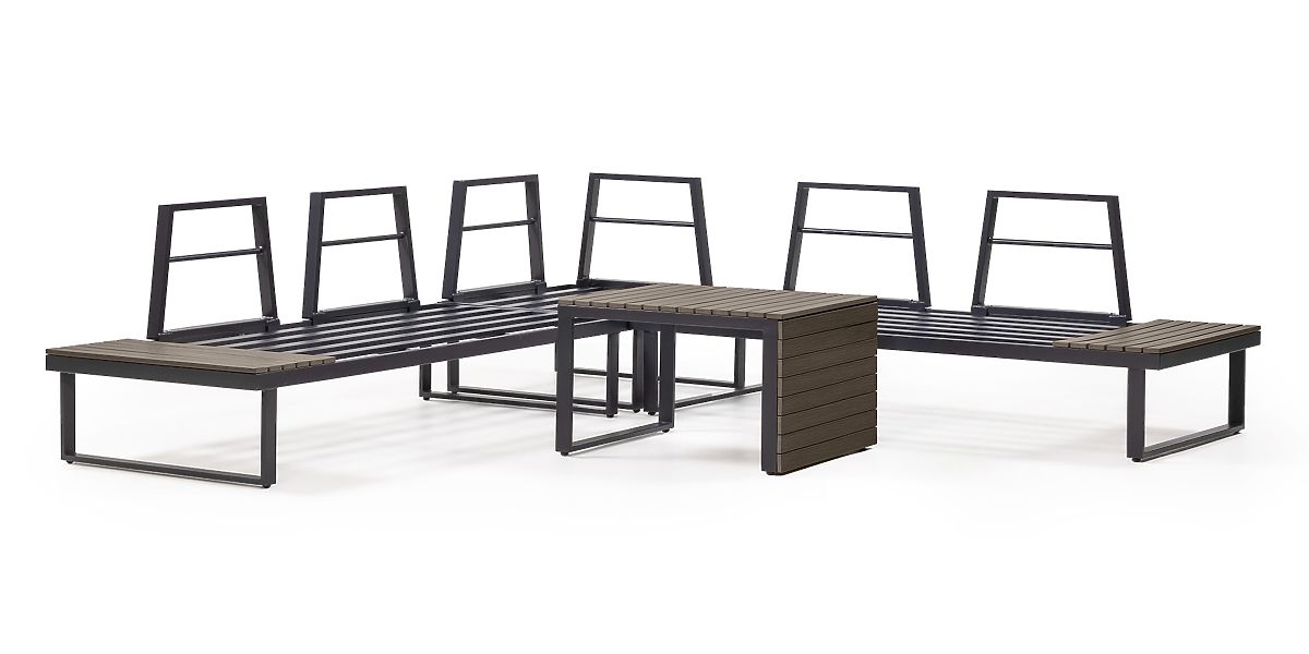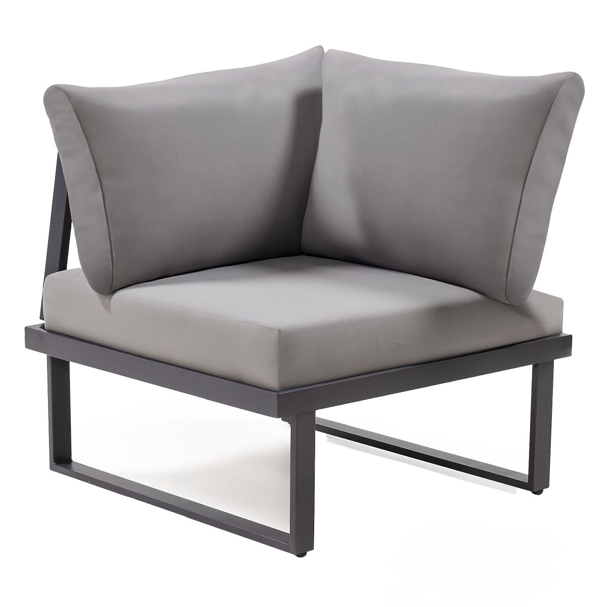 Záhradná rohová sedačka Valongo s multifunkčným stolíkom a svetlosivými vankúšmi. .. viac