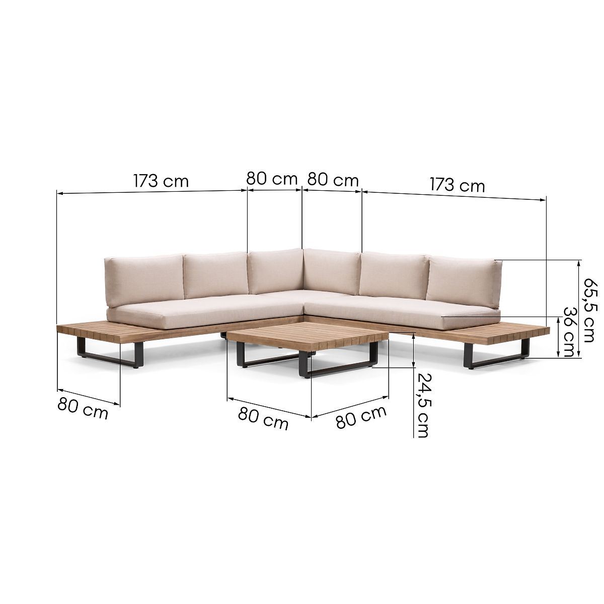 Záhradná rohová sedačka so stolíkom Borgo, akáciové drevo FSC, teakový vzhľad, béžová