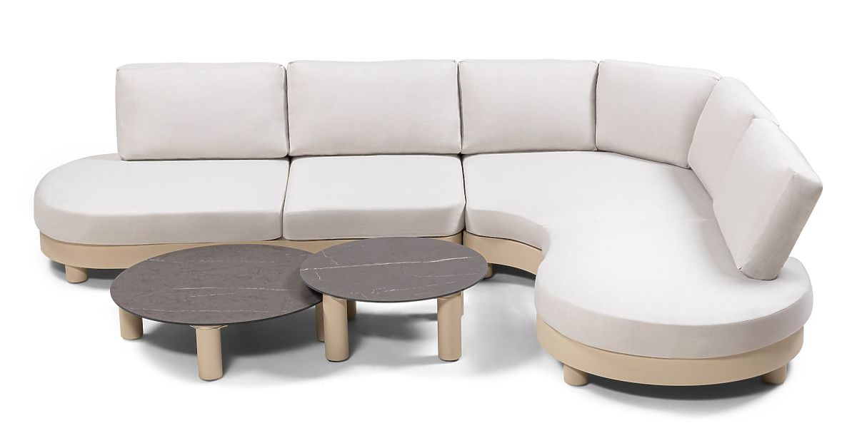 Lukahome.sk » Záhradný nábytok / Záhradné pohovky / Záhradná rohová sedačka s 2 stolíkmi Santa Ana, hliníková, béžová, mramorová dekorácia, oblé tvary