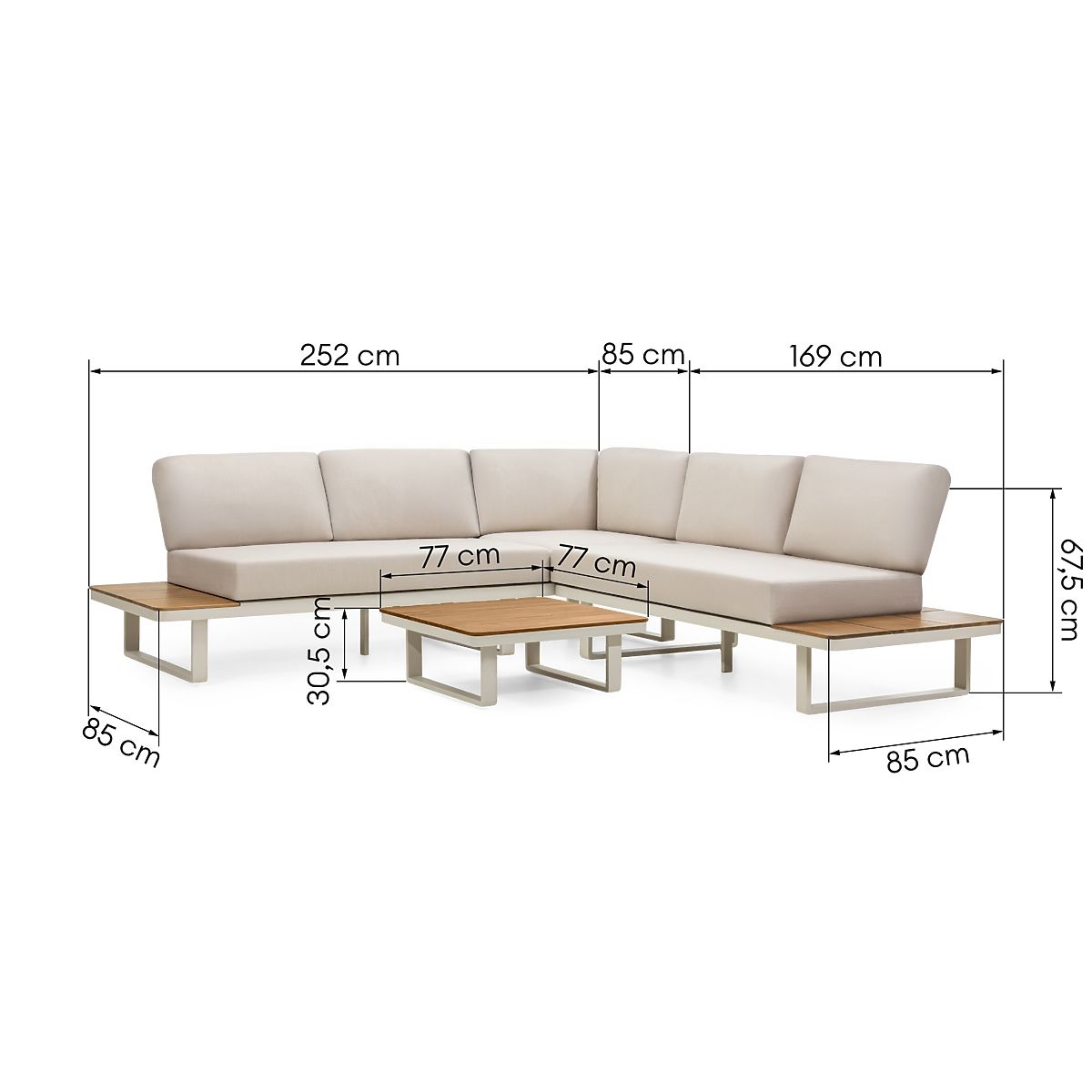 Záhradná rohová sedačka so stolíkom Porticato, akáciové drevo FSC, teakový vzhľad, svetlo béžová